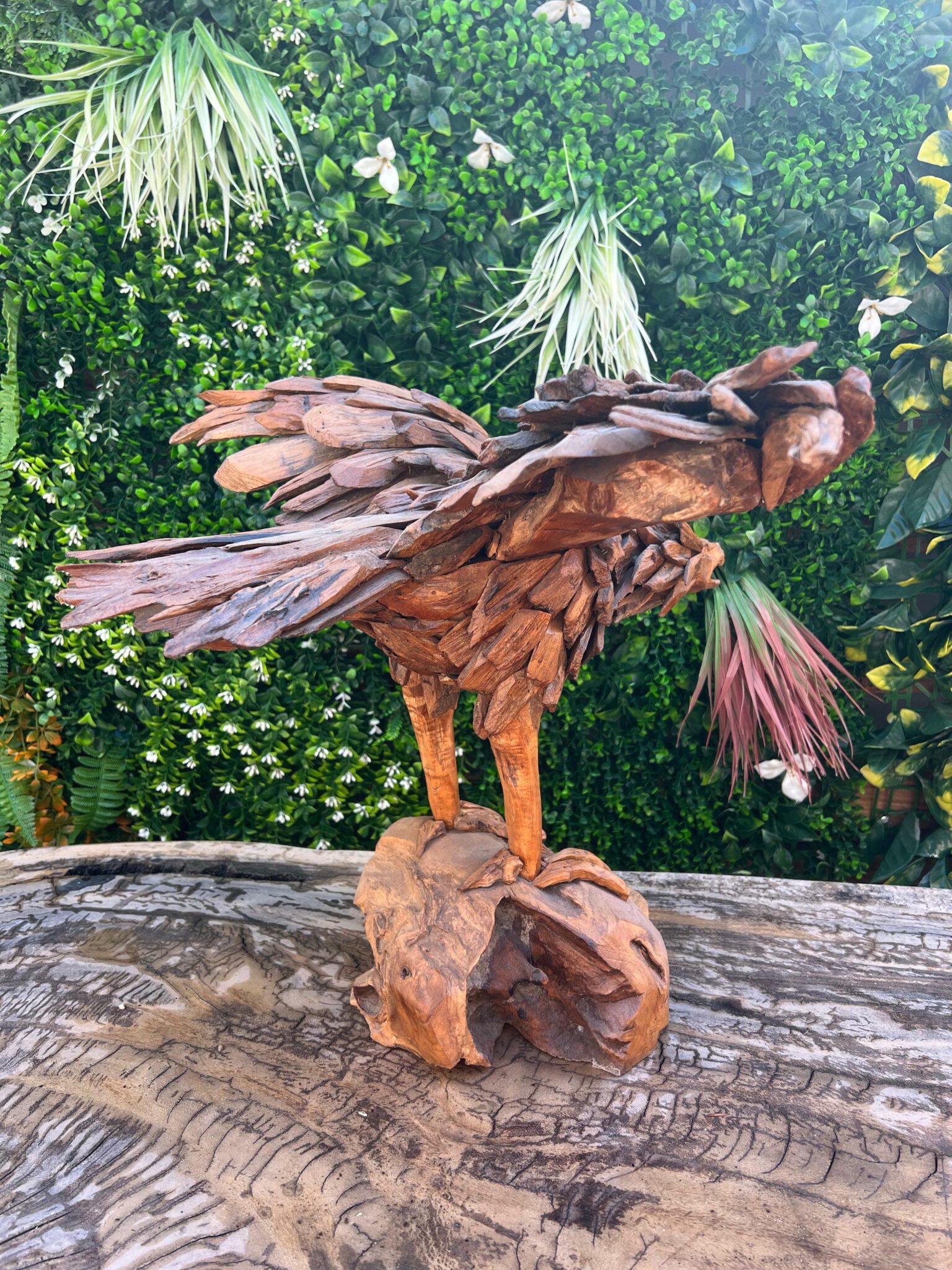 Découvrez notre majestueuse statue d’aigle en teck, fabriquée à la main par des artisans balinais. Cette sculpture impressionnante avec ses ailes déployées, posée sur un socle en forme de rocher, est parfaite pour toute décoration intérieure ou extérieure. Ajoutez une touche de Bali et l’élégance naturelle à votre espace avec cette œuvre d’art unique.