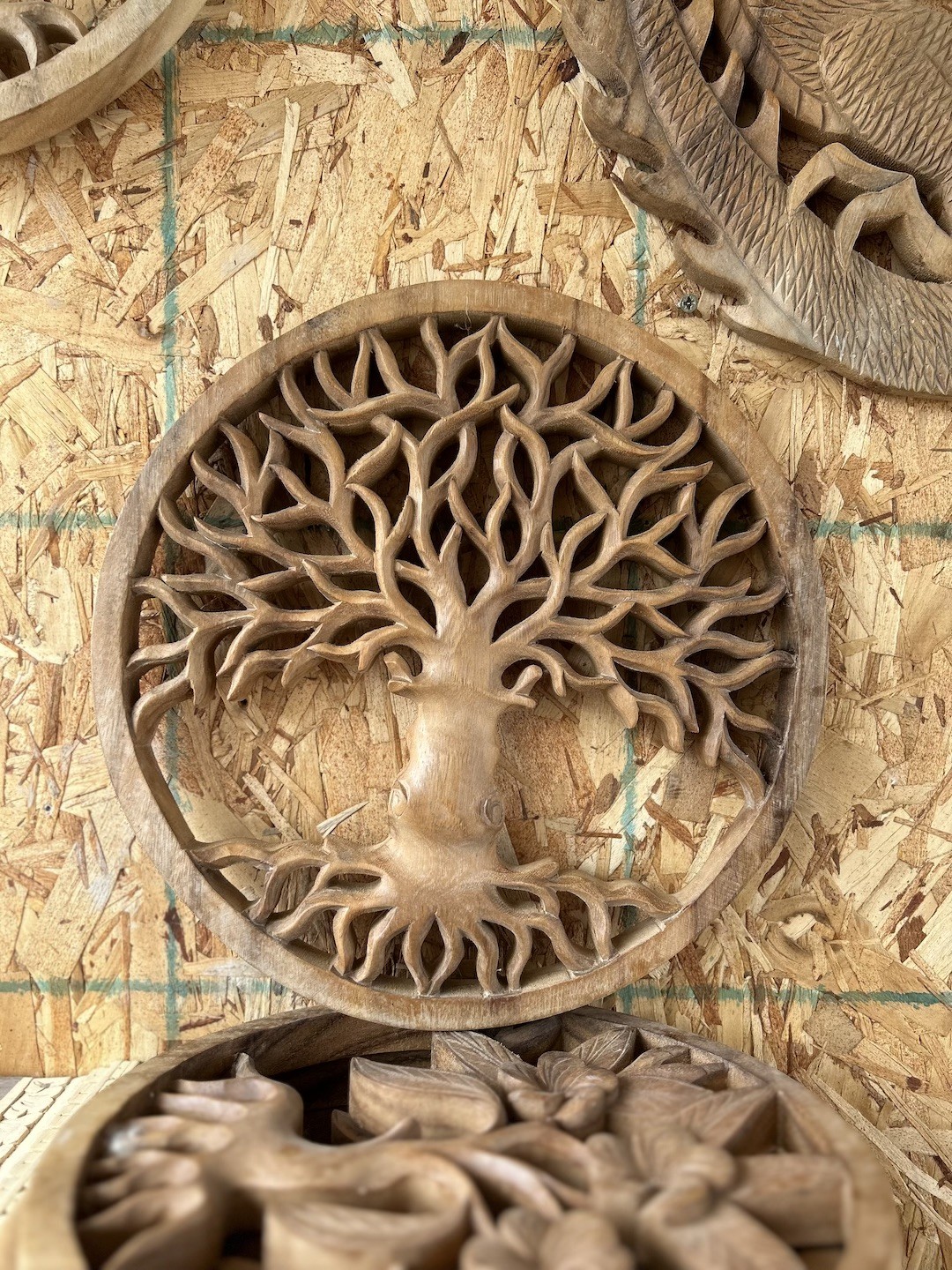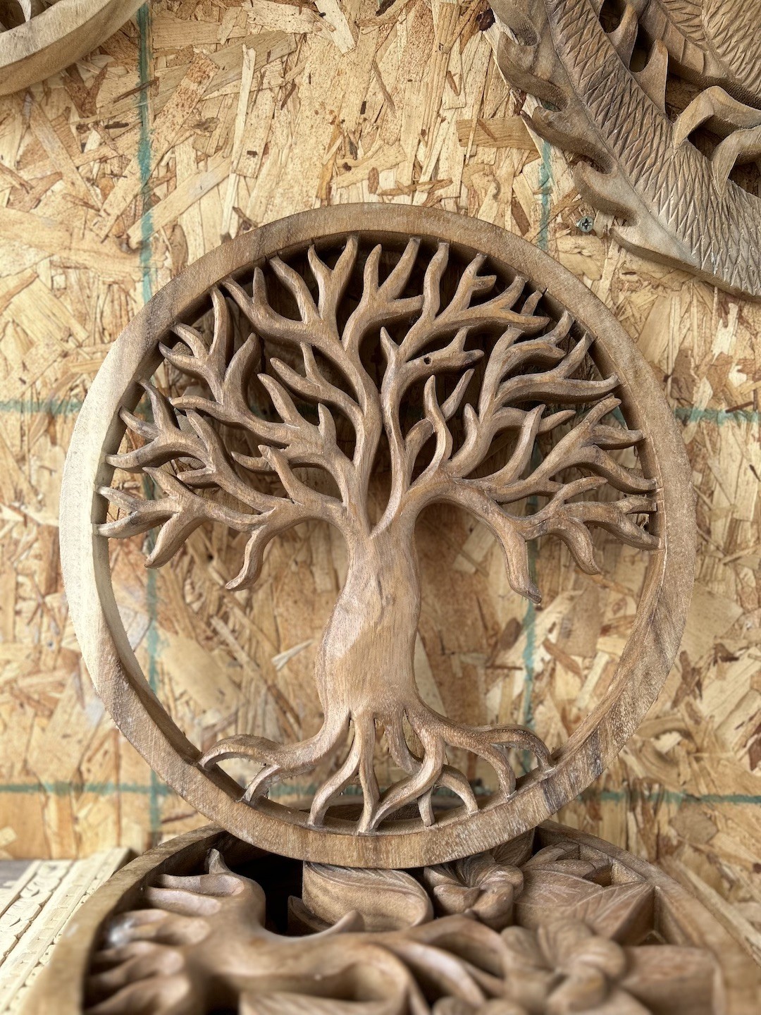 Apportez une touche de Bali à votre intérieur avec notre décoration murale arbre de vie en suar. Sculptée à la main par des artisans balinais, cette pièce unique symbolise la croissance et la force. Disponible en trois tailles (30, 40 cm et 50 cm), elle peut être accrochée au mur ou posée sur un meuble. Craquez pour cette œuvre d’art authentique et laissez-vous séduire par l’artisanat balinais.