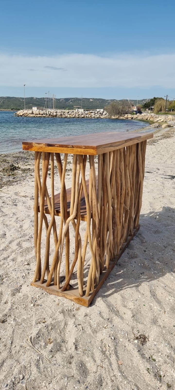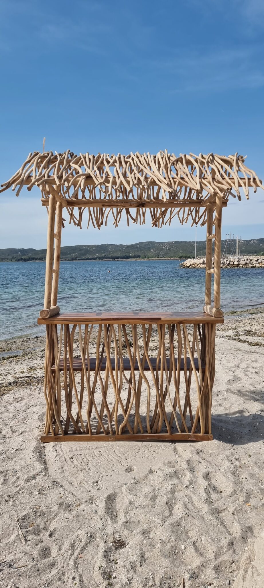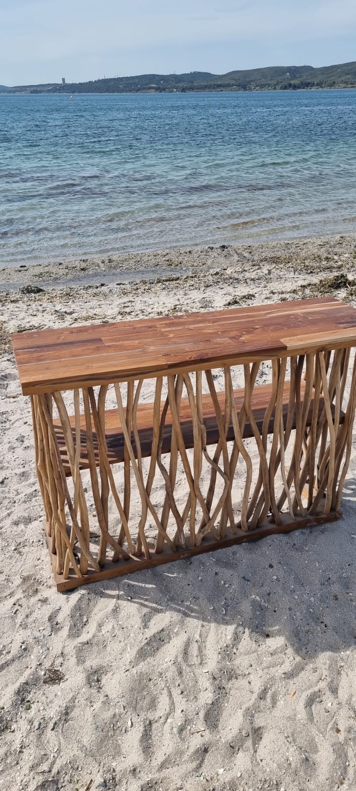 Atypique, intemporel et unique, voici les principaux atouts de notre bar WISMO en bois flotté. Imaginez-vous vous détendre après une dure journée de travail au bord de votre Bar en Teck Flotté, quoi de plus reposant que d’admirer cette œuvre d’art.