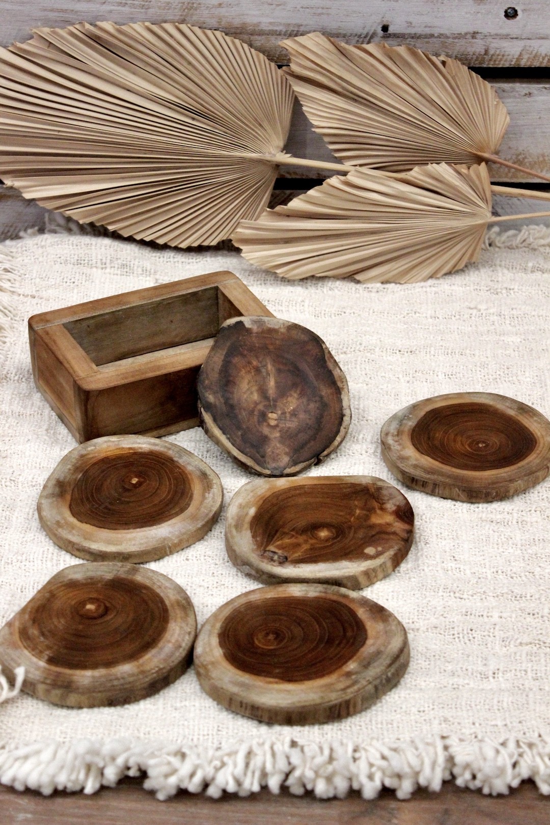 Laissez-vous séduire par l’élégance intemporelle de notre boîte avec 6 dessous de verre en teck, une création artisanale d’exception qui ajoute une touche d’authenticité à votre espace de vie. Fabriquée avec soin à Bali, cette boîte incarne le talent et le dévouement des artisans locaux pour créer des pièces uniques et fonctionnelles.
