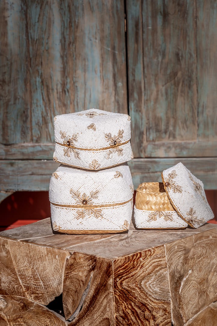 Optez pour cette boîte à offrande Bayu qui incarne une fusion délicate entre l’artisanat ancestral et la décoration ethnique, créant des joyaux porteurs d’une signification spirituelle profonde. Ces trésors, parés de perles façonnées à la main, transcendent leur rôle initial pour devenir des éléments incontournables de la décoration de maison balinaise, apportant une touche authentique de l’art ethnique. Chaque boîte, en tant qu’œuvre unique, témoigne de l’artisanat authentique et de la beauté imparfaite, célébrant la diversité propre à chaque création.