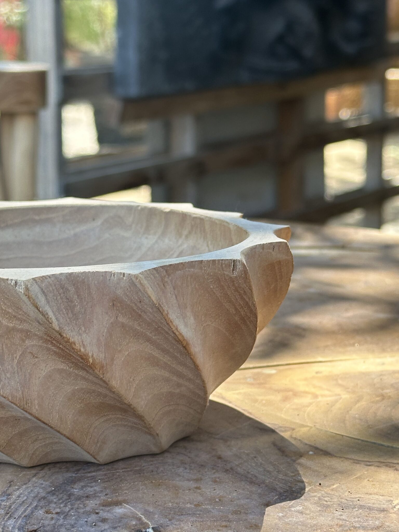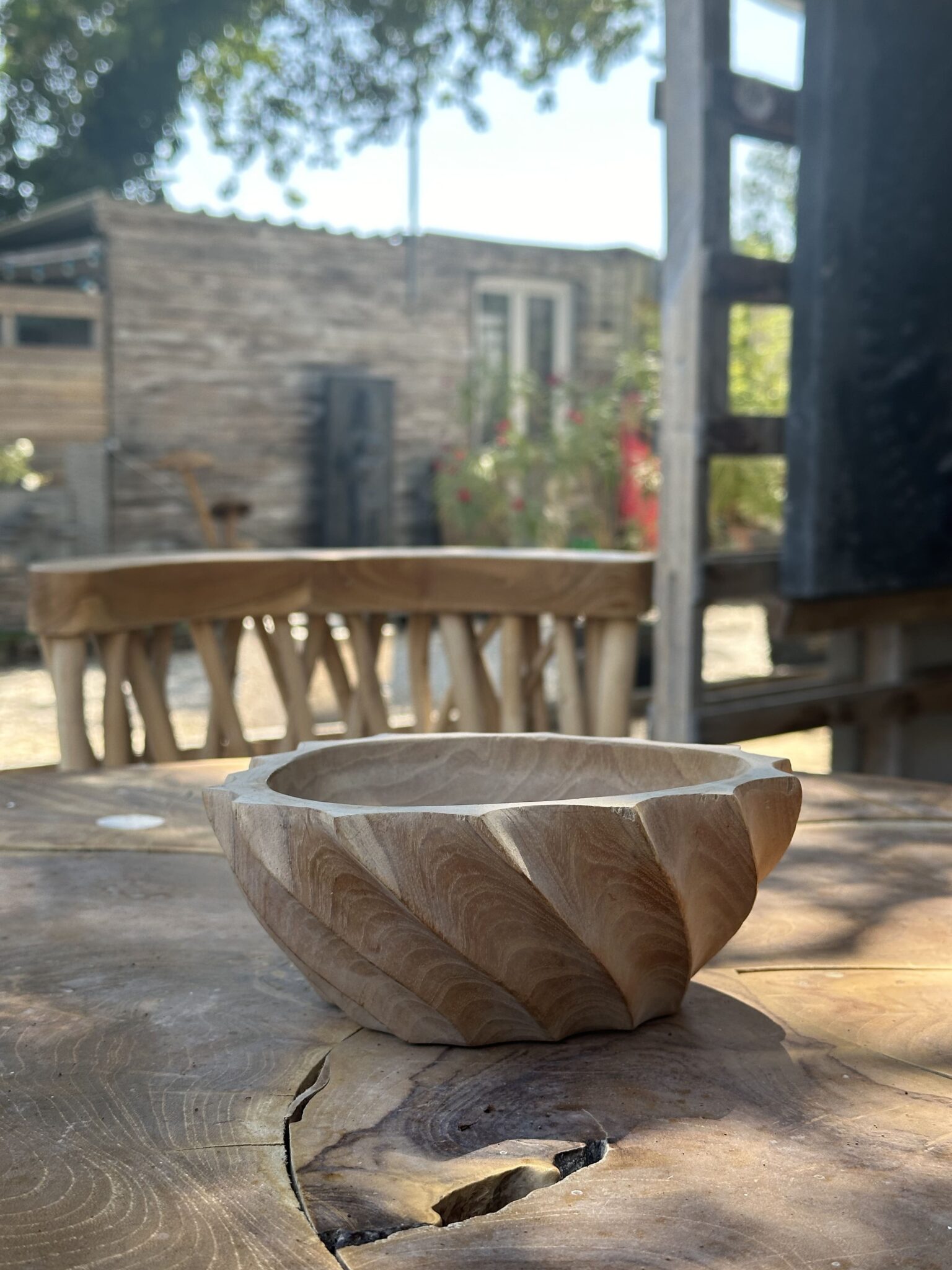 Apportez une touche d’élégance naturelle à votre intérieur avec notre bol en teck torsadé fait main à Bali. Ce bol unique et robuste est idéal pour servir des fruits ou comme pièce décorative, tout en soutenant les artisans balinais et leurs traditions.