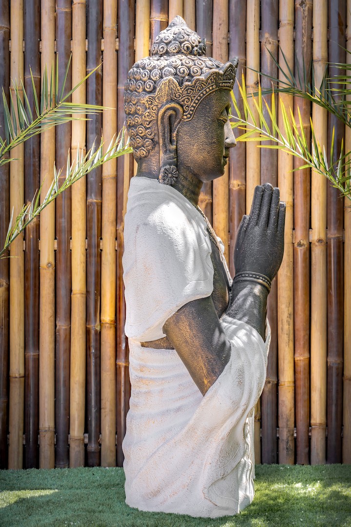 Complétez votre espace extérieur avec cette statue de jardin bouddha Half Praying. Cette statue de bouddha véhicule des valeurs du bouddhisme comme la compassion, l’altruisme et la bienveillance.