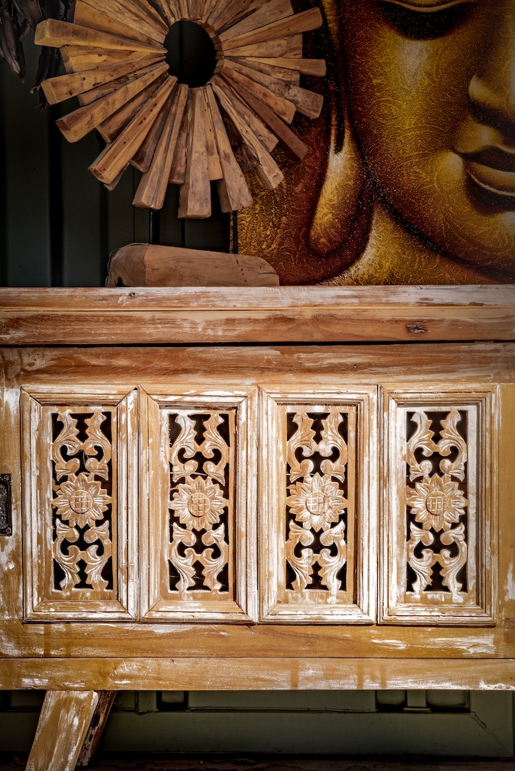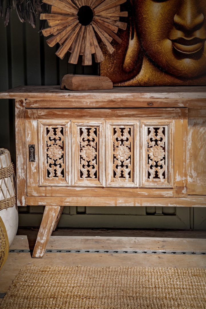 Transformez votre espace avec notre buffet en manguier sculpté à la main, inspiré de l’exotisme balinais. Ce meuble artisanal, fusion de modernité et d’authenticité, offre une décoration intérieure unique. Doté d’une porte coulissante et de sculptures élégantes, il évoque l’artisanat traditionnel tout en ajoutant une touche de charme à n’importe quel intérieur. Investissez dans bien plus qu’un meuble, mais dans une histoire et une esthétique intemporelles.