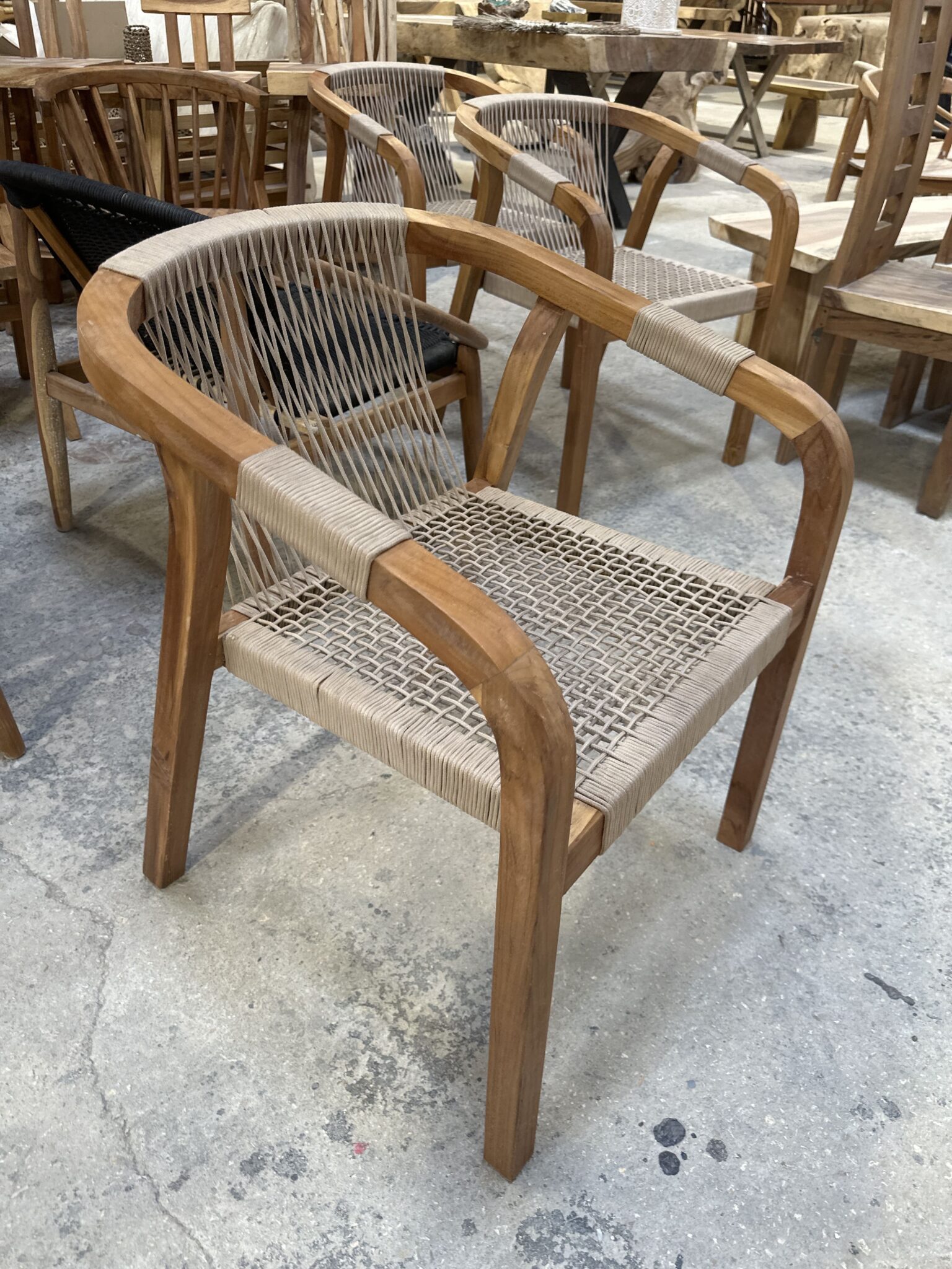 Fabriquée à la main par des artisans balinais, cette chaise en bois allie savoir-faire traditionnel et design contemporain. Sa structure solide est recouverte de cordes grises tressées, offrant un rendu à la fois naturel et élégant. Idéale pour sublimer une décoration intérieure comme extérieure, elle apporte une touche de Bali à votre espace de vie. Cette chaise artisanale est bien plus qu’un simple objet d’ameublement : c’est une pièce unique en bois, pensée pour durer et s’intégrer dans une ambiance chaleureuse et raffinée.