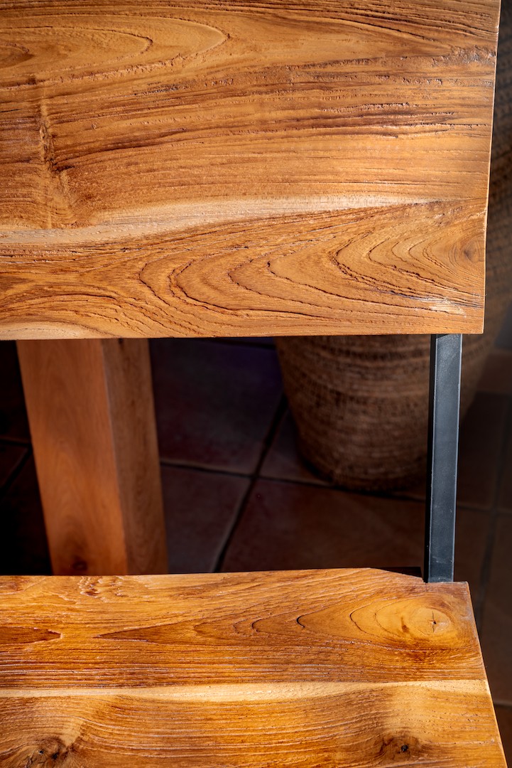 Apportez du caractère à votre décoration avec notre chaise Maylo, un modèle en bois de teck aux pieds en fer noir. Son style moderne et industriel s’intègre aussi bien dans une salle à manger que dans un bureau. Conçue artisanalement à Bali, cette chaise allie robustesse, élégance et confort. Idéale pour sublimer votre intérieur avec une pièce unique et authentique.