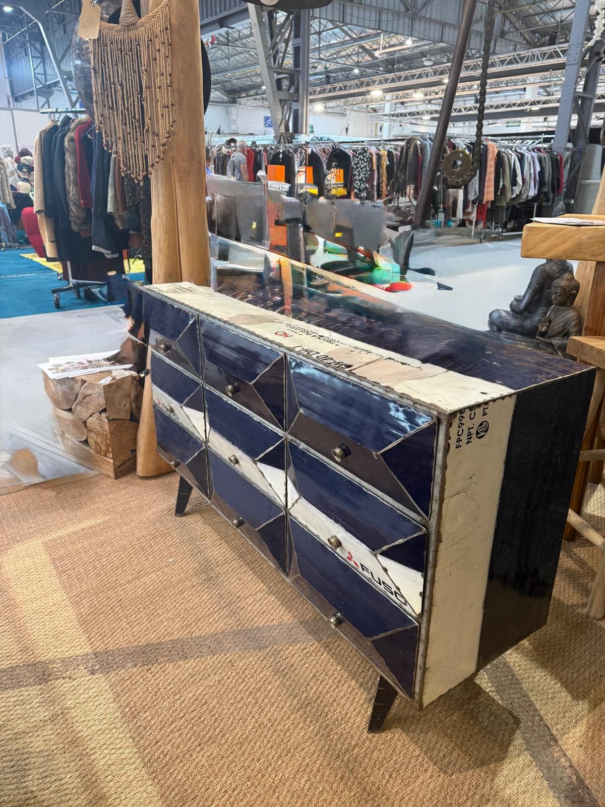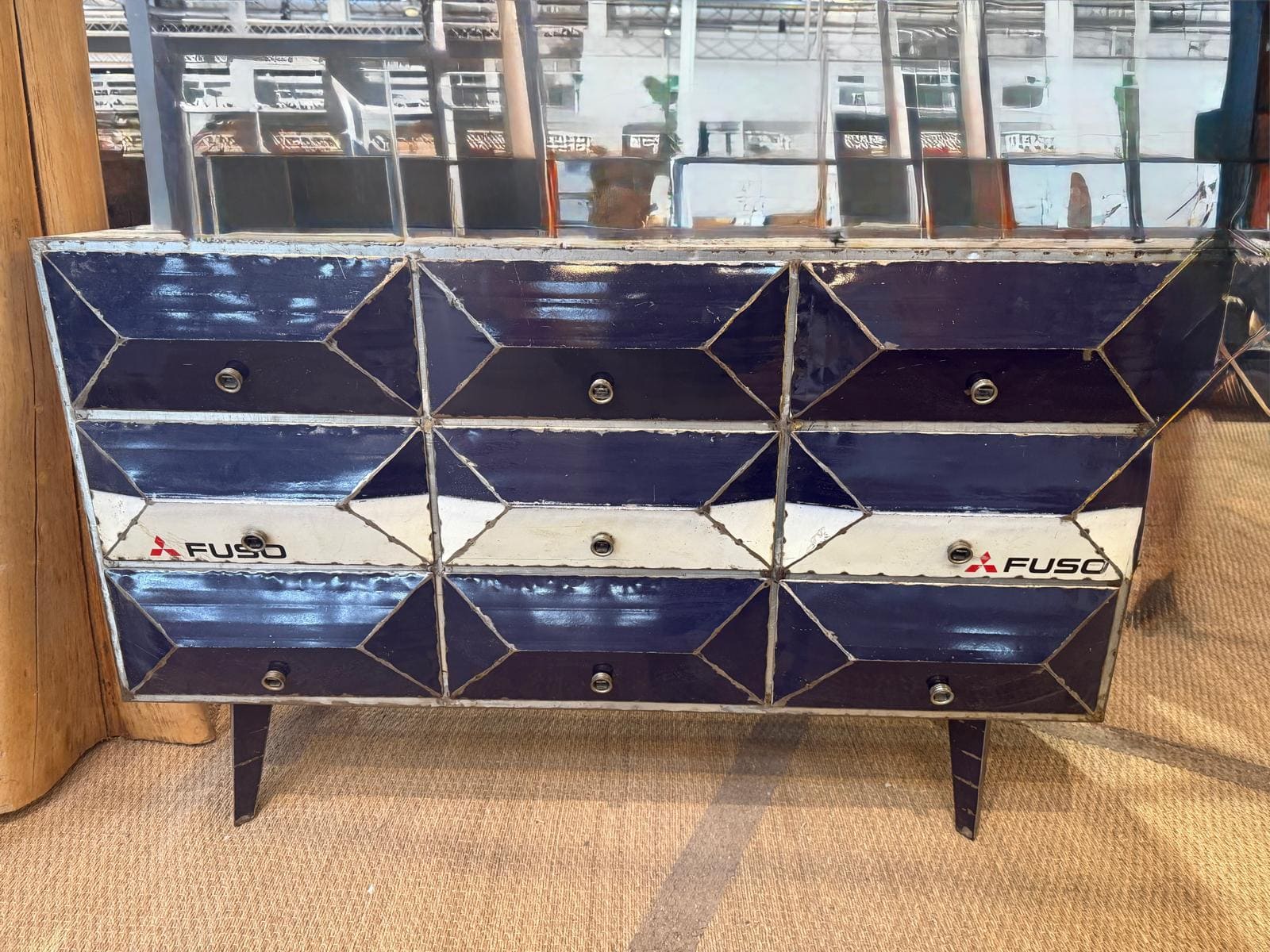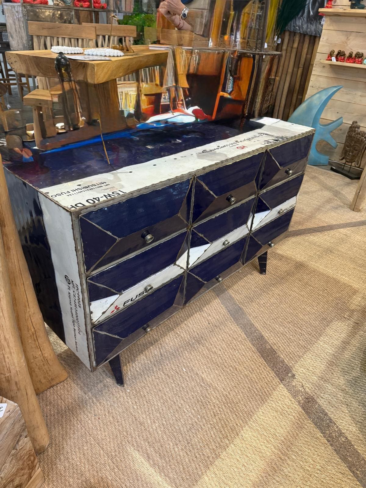 Apportez une touche unique à votre intérieur avec la commode Fuso bleu en fer recyclé, entièrement façonnée à la main par des artisans balinais. Alliant authenticité, style et durabilité, elle s’intègre parfaitement à une décoration intérieure comme un salon, une chambre ou un bureau, tout en pouvant embellir un patio ou une véranda couverte. Ses tiroirs spacieux offrent un rangement pratique, tandis que sa finition soignée et sa teinte bleu profond en font un véritable objet de décoration qui reflète le savoir-faire de Bali et apporte caractère et originalité à votre espace.