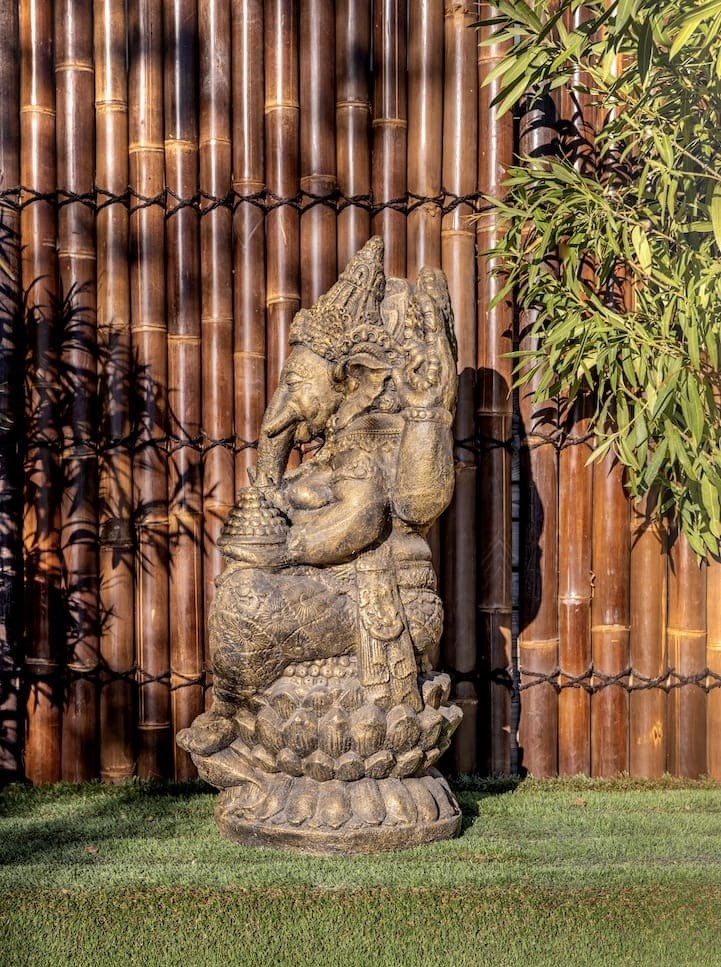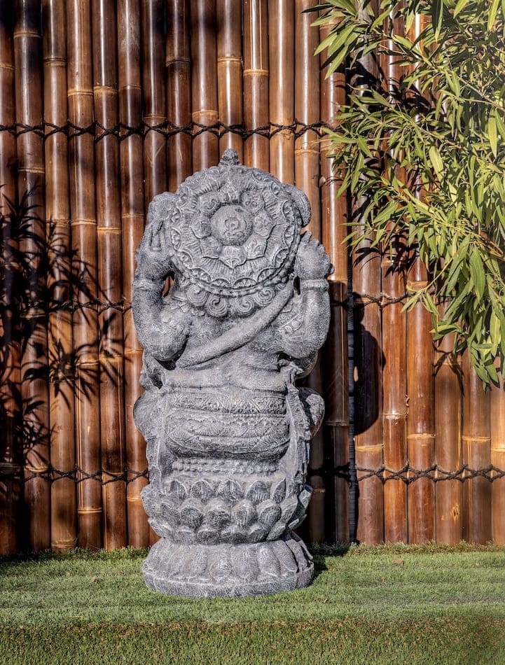 Transformez votre jardin en un havre de paix exotique avec la statue de Ganesh, une pièce artisanale unique, fusionnant décoration asiatique, feng shui, et éléments symboliques. Chaque détail minutieusement ciselé offre une esthétique exceptionnelle, créant une ambiance harmonieuse propice à la méditation. Pour assurer sa longévité, nous vous conseillons de lui appliquer un produit hydrofuge.