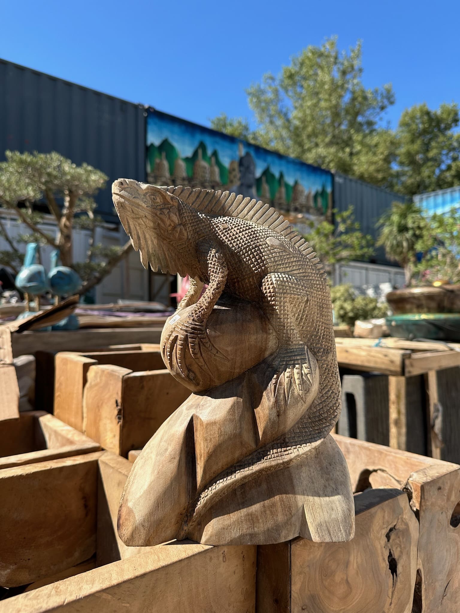 Cette statuette d’iguane en bois de suar, sculptée à la main, est une pièce décorative unique provenant de Bali. Mesurant 30 cm, elle repose sur un rocher en bois de suar détaillé, capturant l’essence de la nature exotique. Parfaite pour ajouter une touche d’originalité à votre décoration, cette œuvre artisanale s’intègre facilement dans n’importe quel espace. Offrez-vous un objet de décoration authentique, alliant beauté naturelle et savoir-faire balinais.
