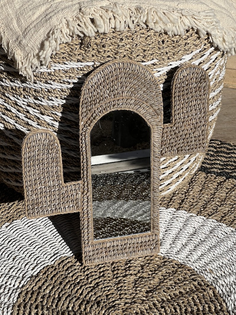 Découvrez l’exclusivité artistique avec notre miroir cactus Surya, une pièce maîtresse façonnée à la main à Bali, où chaque coquillage minutieusement assemblé crée une singularité captivante. Suspendez-le avec grâce ou posez-le sur un buffet pour insuffler à votre intérieur une élégance ethnique, élevant votre espace à une dimension artistique unique.
