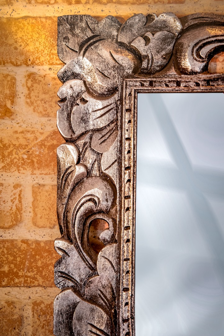 Apportez un effet de profondeur à votre pièce à vivre avec ce miroir en bois sculpté, il apportera une nouvelle dimension à votre décoration. En effet, il est à la fois utile et à la fois joli. Il agrandit les pièces, joue avec la lumière et nous permet d’être les plus élégants.
