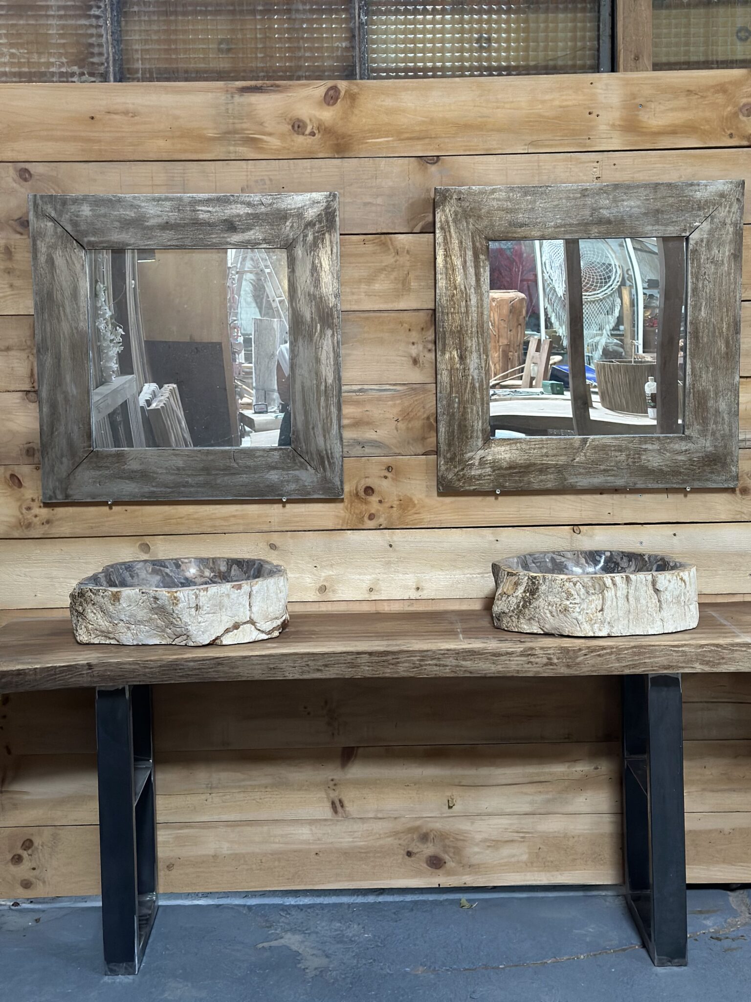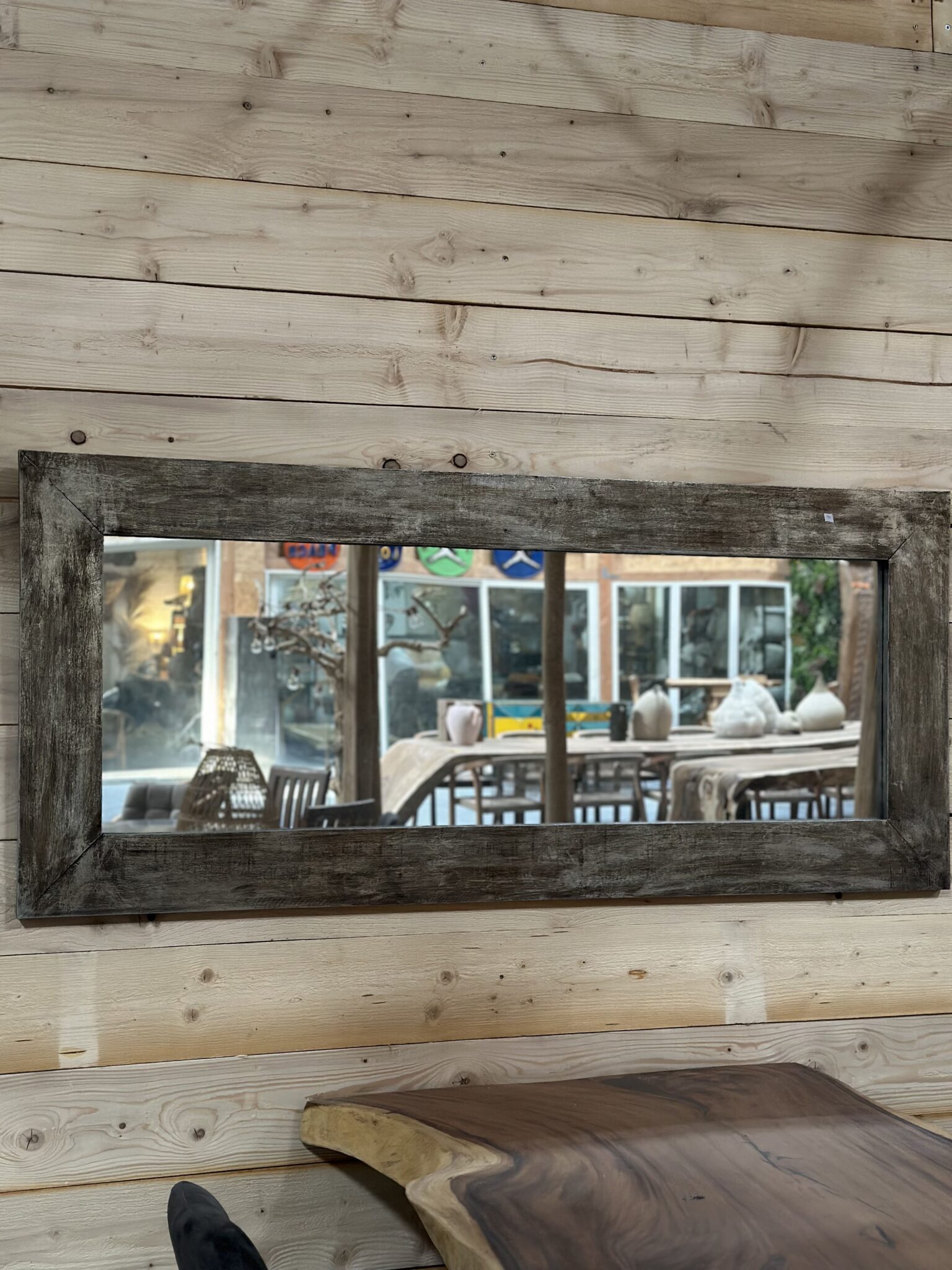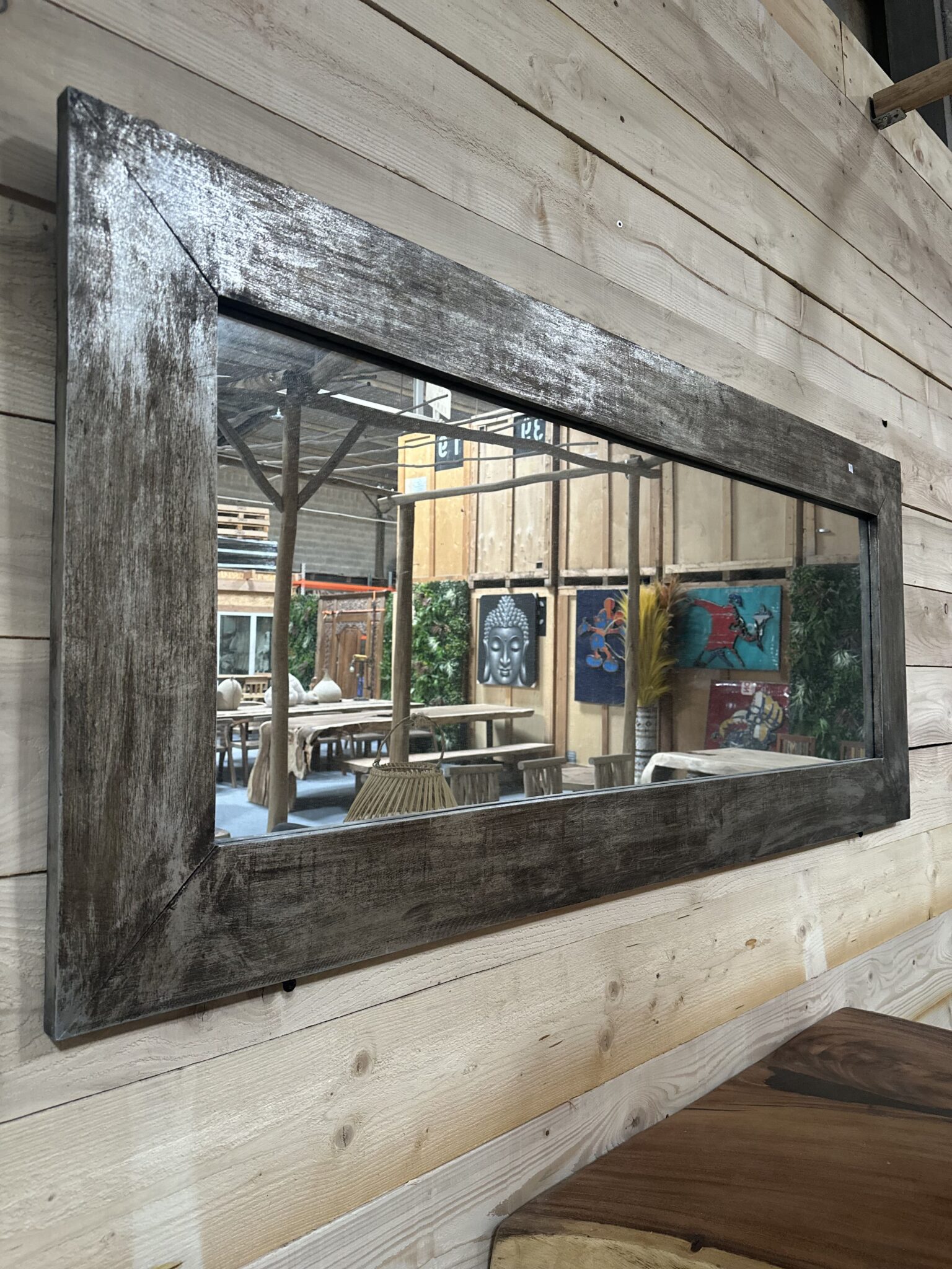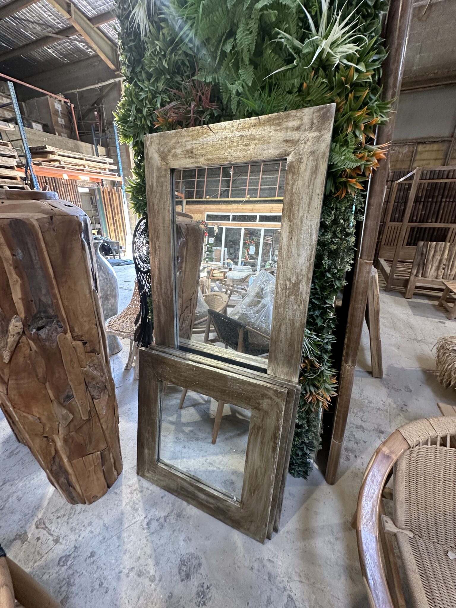 Ajoutez du caractère à votre décoration avec ce miroir en bois vieilli, entièrement fait main à Bali. Disponible en version carrée ou rectangulaire, il séduit par son cadre texturé rehaussé d’une finition argentée satinée. Une pièce unique au style affirmé, mêlant charme brut et élégance balinaise, idéale pour illuminer et personnaliser chaque pièce de votre intérieur.