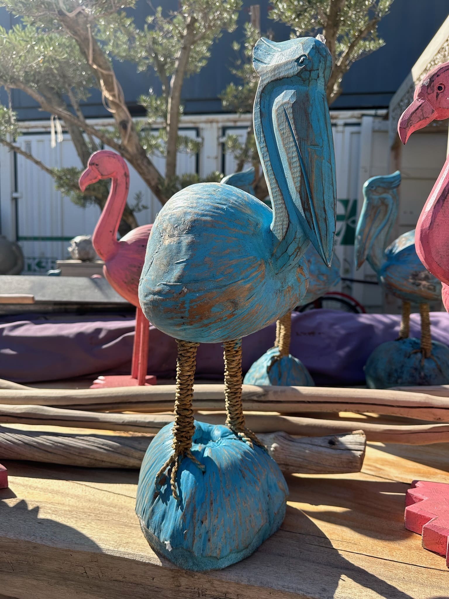 Ajoutez une note d’originalité à votre intérieur avec cette statuette en bois de pélican, façonnée à la main à Bali. Peinte en bleu, elle repose sur un rocher avec des jambes en rotin, offrant une décoration unique qui capture l’essence artisanale de Bali. Parfaite pour sublimer votre espace de vie avec une touche exotique et élégante.
