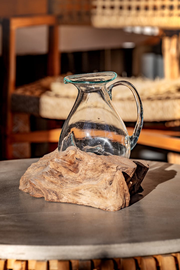 Plongez dans l’élégance authentique du pichet en verre soufflé adossé à une racine de teck, une création artisanale venue tout droit de Bali, qui fusionne subtilement la délicatesse du verre avec la nature brute du teck. Façonné à la main par des artisans locaux, chaque pichet raconte son histoire à travers ses textures distinctes et ses jeux de lumière enchanteurs. Cet objet dépasse le simple rôle utilitaire pour devenir un véritable élément décoratif, un témoin du savoir-faire artisanal balinais et de l’harmonie entre la créativité humaine et la beauté naturelle. Que ce soit pour les occasions spéciales ou le quotidien, il apporte une note de sophistication qui évoque le charme artistique et l’exotisme de l’île de Bali.