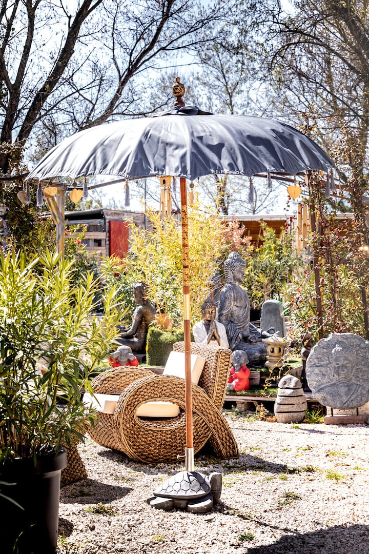 Le pied de parasol tortue balinais fusionne entre l’élégance artistique balinaise et fonctionnalité exceptionnelle.