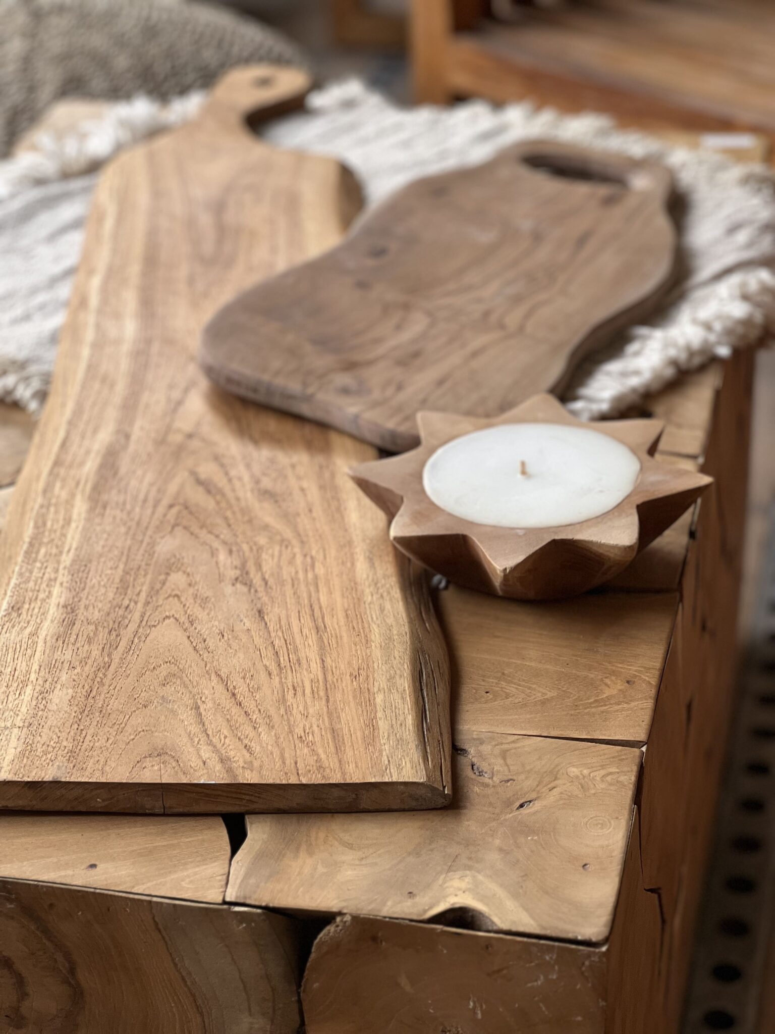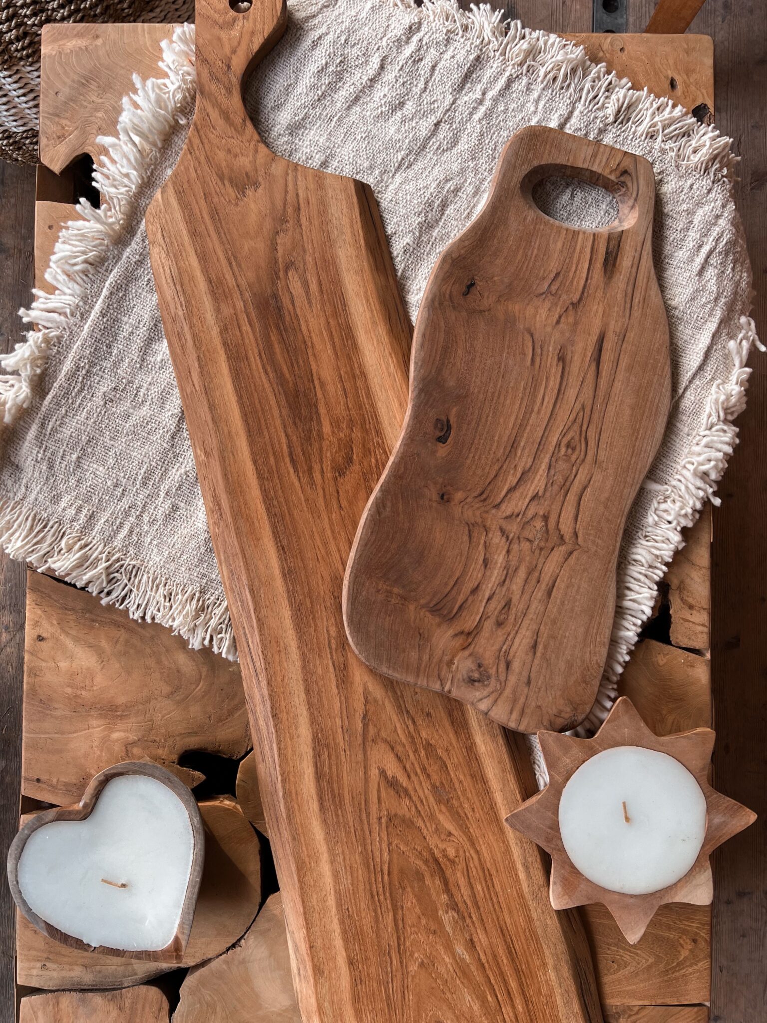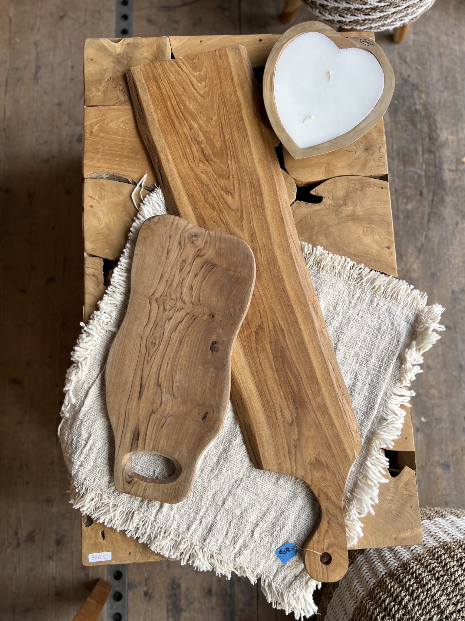 Apportez une touche d’élégance balinaise à votre cuisine avec notre planche à découper en teck. Fabriquée à la main par des artisans de Bali, cette planche à découper combine durabilité et beauté. Parfaite pour la découpe ou la décoration, elle est disponible en plusieurs tailles. Investissez dans un accessoire pratique et esthétique qui soutient l’artisanat local.