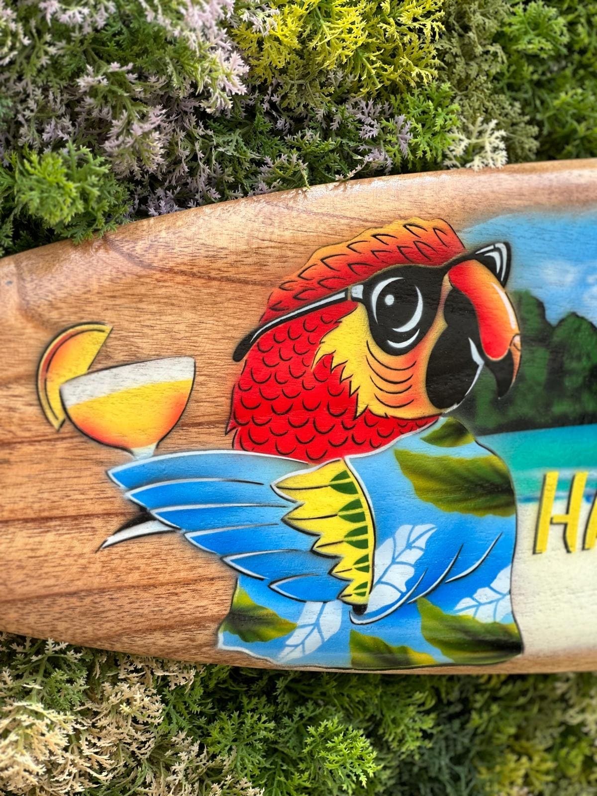 Transformez votre espace avec notre décoration murale en bois inspirée de Bali, créée à la main par des artisans locaux. Cette pièce unique capture l’océan balinais et ses vagues turquoise. Accompagnée d’un perroquet ensoleillé et d’une tortue majestueuse, cette œuvre évoque l’évasion tropicale et l’artisanat authentique de Bali. Ajoutez une touche exotique à votre intérieur avec cette décoration murale qui incarne le charme et la sérénité de l’île des Dieux.