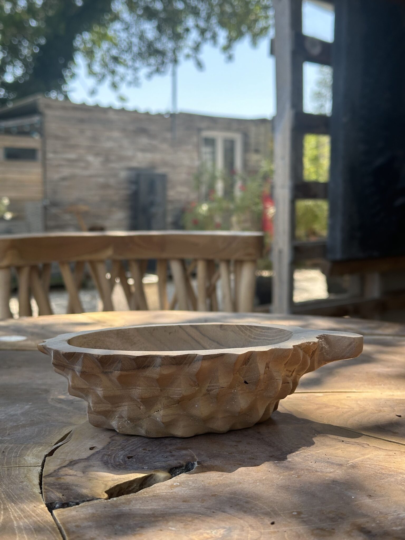 Apportez une touche d’exotisme et de chaleur à votre intérieur avec notre plat en teck en forme de litchi, fait à la main à Bali. Parfait pour ranger des fruits, des clés, ou tout autre petit objet, ce plat est à la fois pratique et esthétique, et reflète l’artisanat traditionnel balinais.