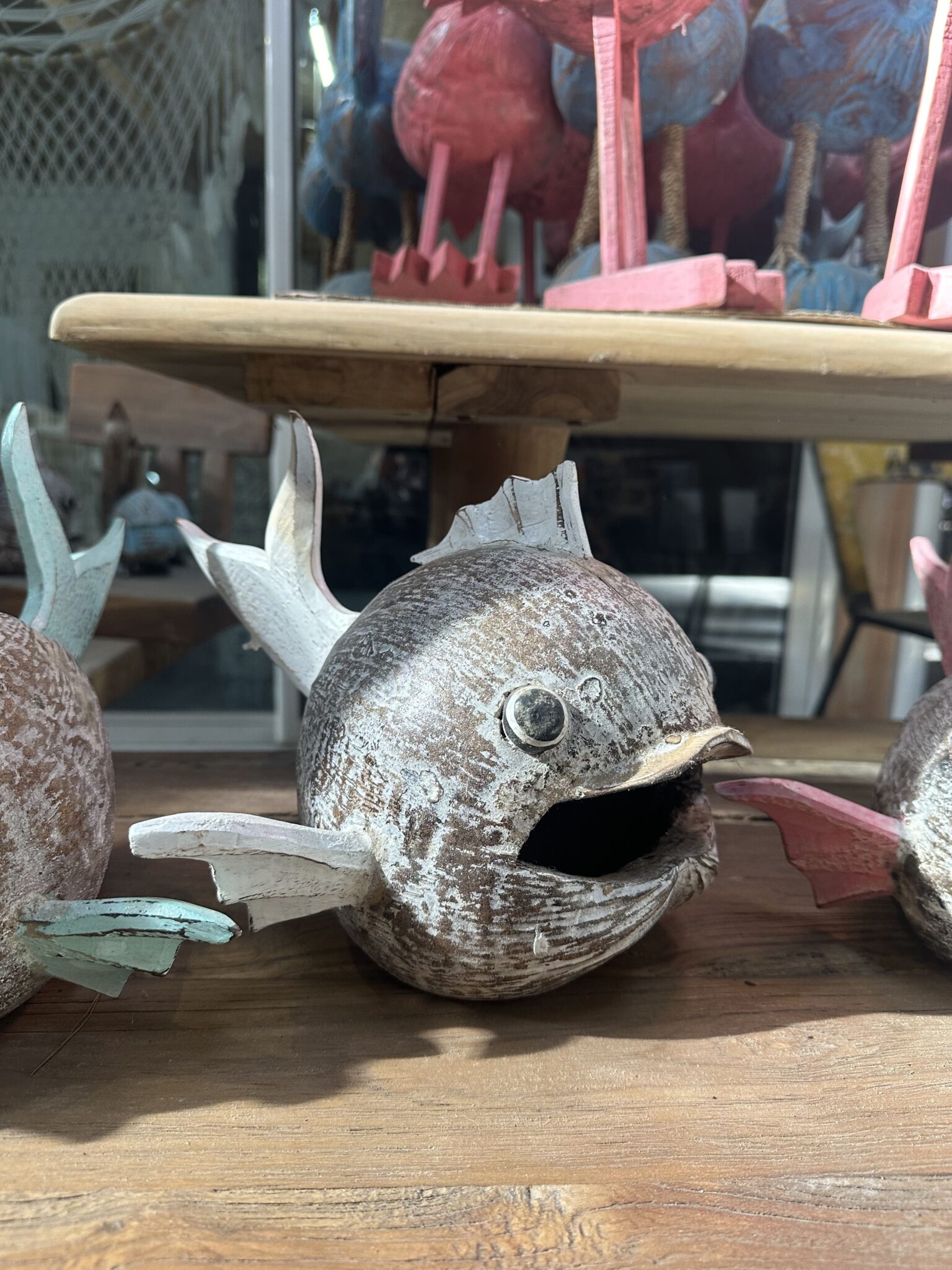 Ajoutez une touche d’exotisme à votre décoration avec cette statuette de poisson chat en bois, façonnée à la main à Bali. Peinte avec des détails colorés en bleu, blanc ou rose, elle incarne parfaitement l’artisanat balinais. Idéale pour sublimer votre espace avec une pièce unique qui allie authenticité et design.