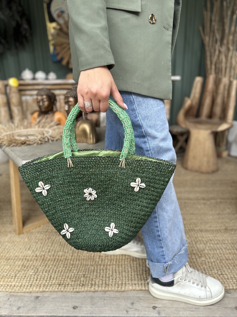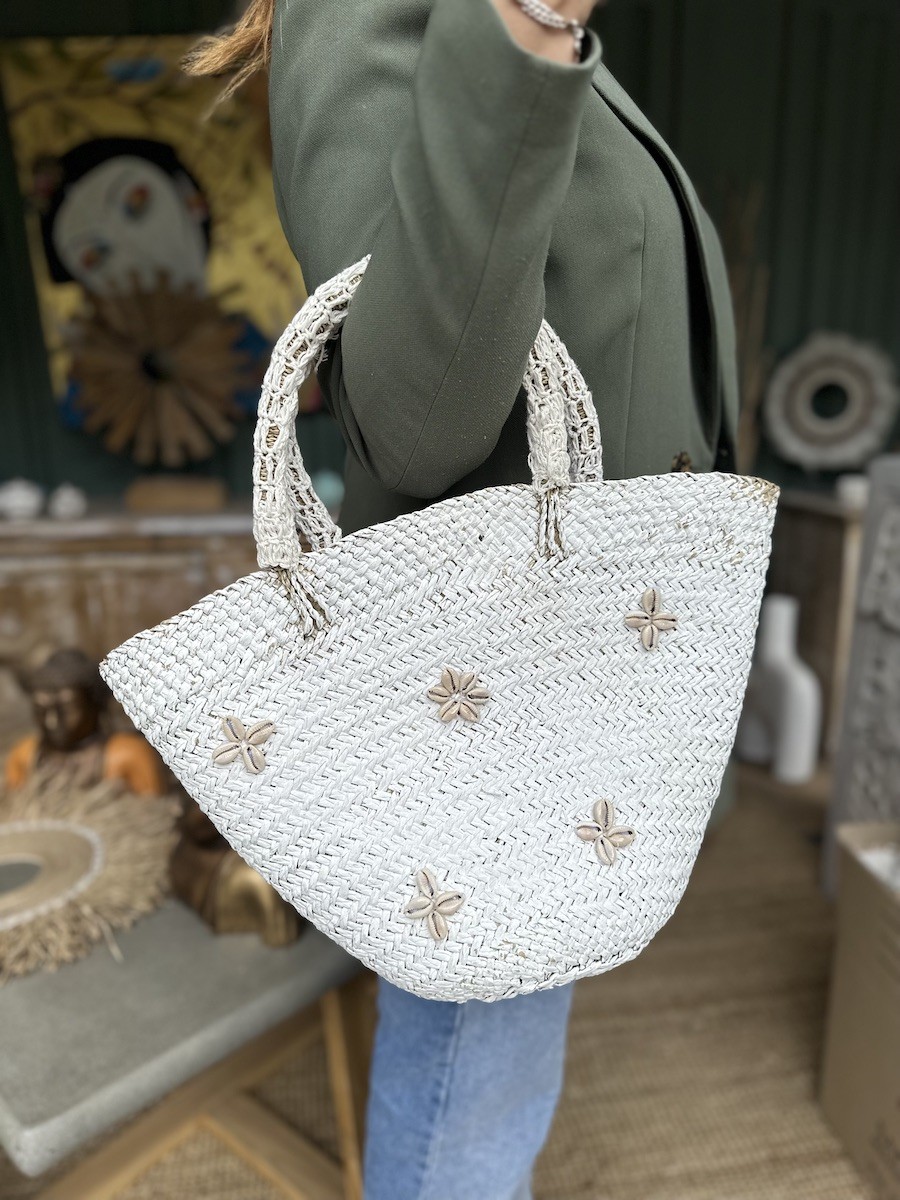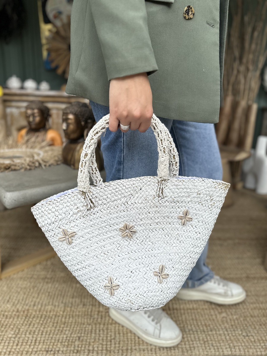 Le sac en osier et coquillage est un accessoire de mode très prisé pour les sorties d’été et les journées à la plage. Fabriqué à la main par des artisans balinais, ce sac est disponible en blanc, noir et vert, et dispose d’une doublure à l’intérieur pour plus de solidité. Avec son style bohème chic, élégant et raffiné, ce sac est parfait pour toutes les occasions, que ce soit pour une sortie entre amies, une journée à la plage ou une soirée en ville.