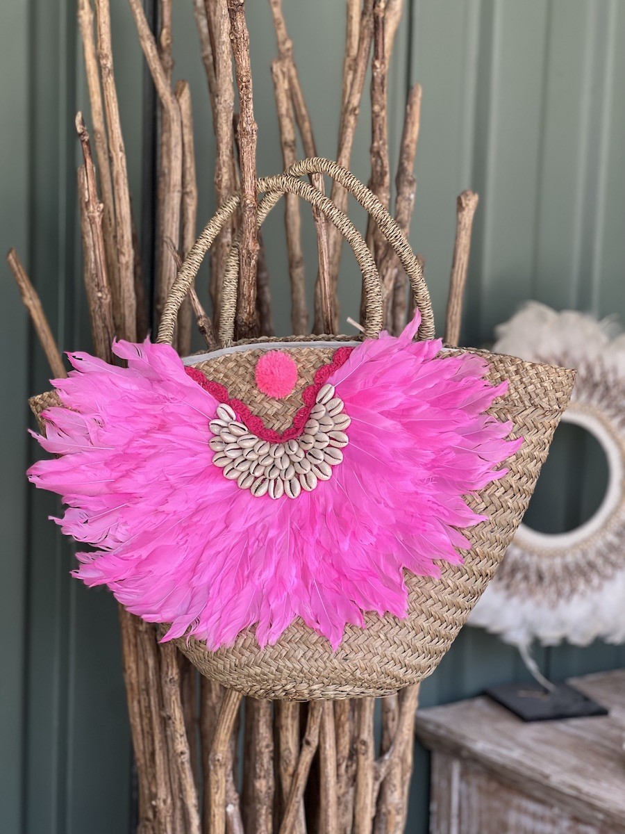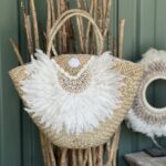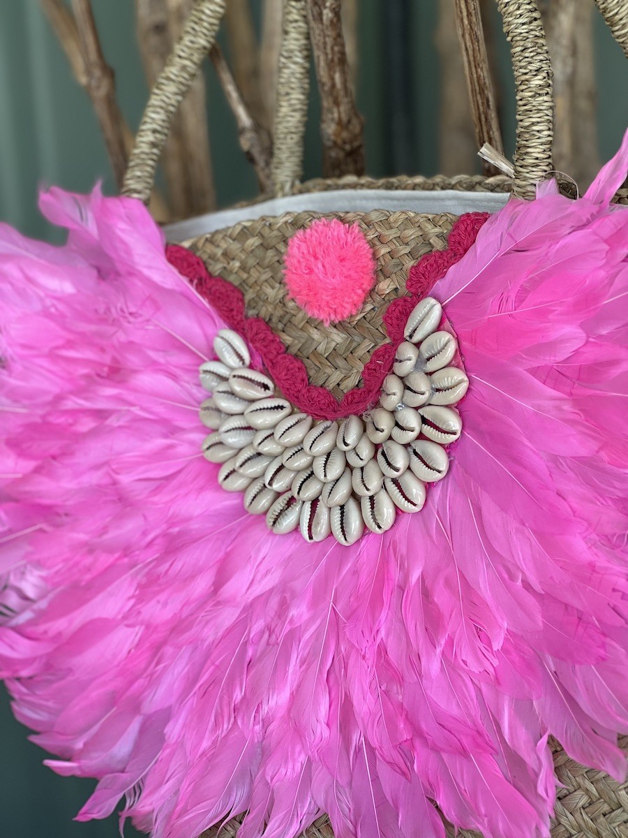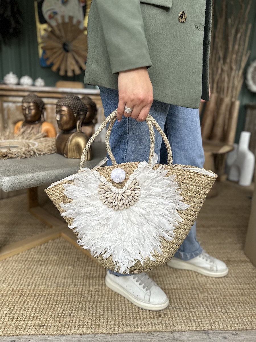 Le sac en osier et en plumes est un accessoire de mode idéal pour les sorties d’été et les journées à la plage. Fabriqué à la main par des artisans balinais, ce sac est disponible en blanc et rose, et dispose d’une doublure à l’intérieur pour plus de solidité. Ce sac au style bohème chic, élégant et raffiné est parfait pour toutes les occasions, que ce soit pour une sortie entre amies, une journée à la plage ou une soirée en ville.