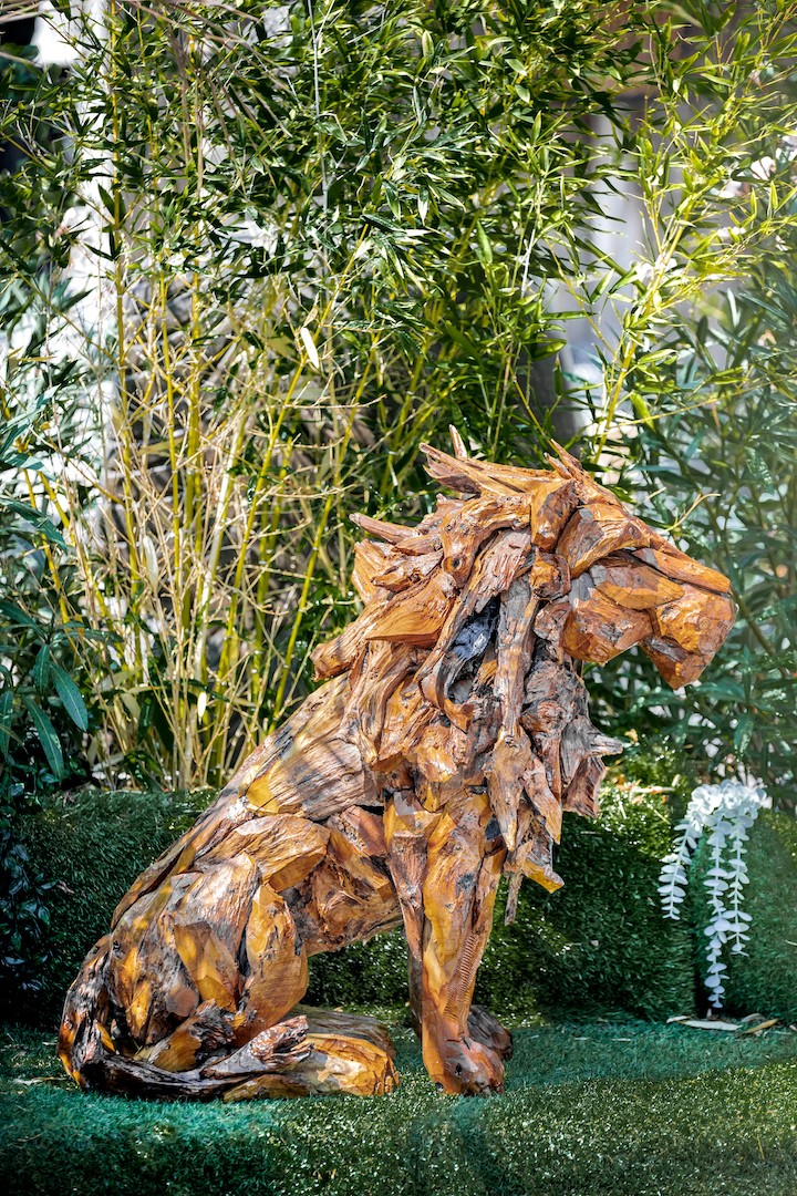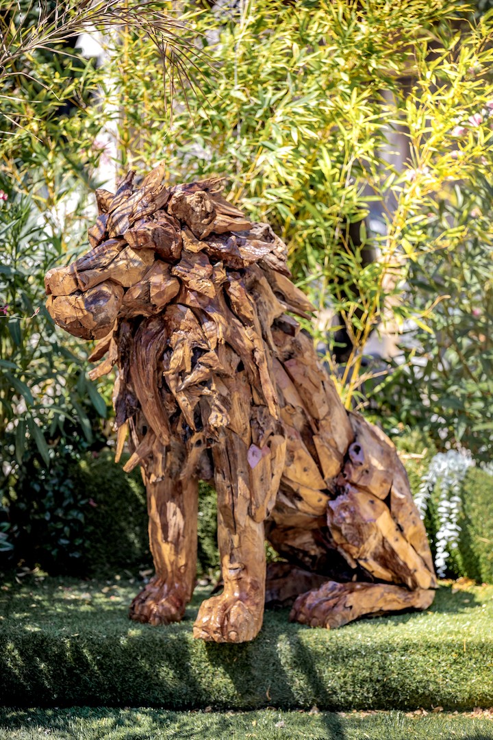 Une sculpture de lion en bois de teck est une décoration idéale pour les extérieurs. Le bois de teck est un matériau naturel renommé pour sa durabilité et sa résistance aux conditions météorologiques défavorables. Il est également connu pour son grain unique et ses couleurs riches, qui peuvent varier du brun foncé au rouge orangé.