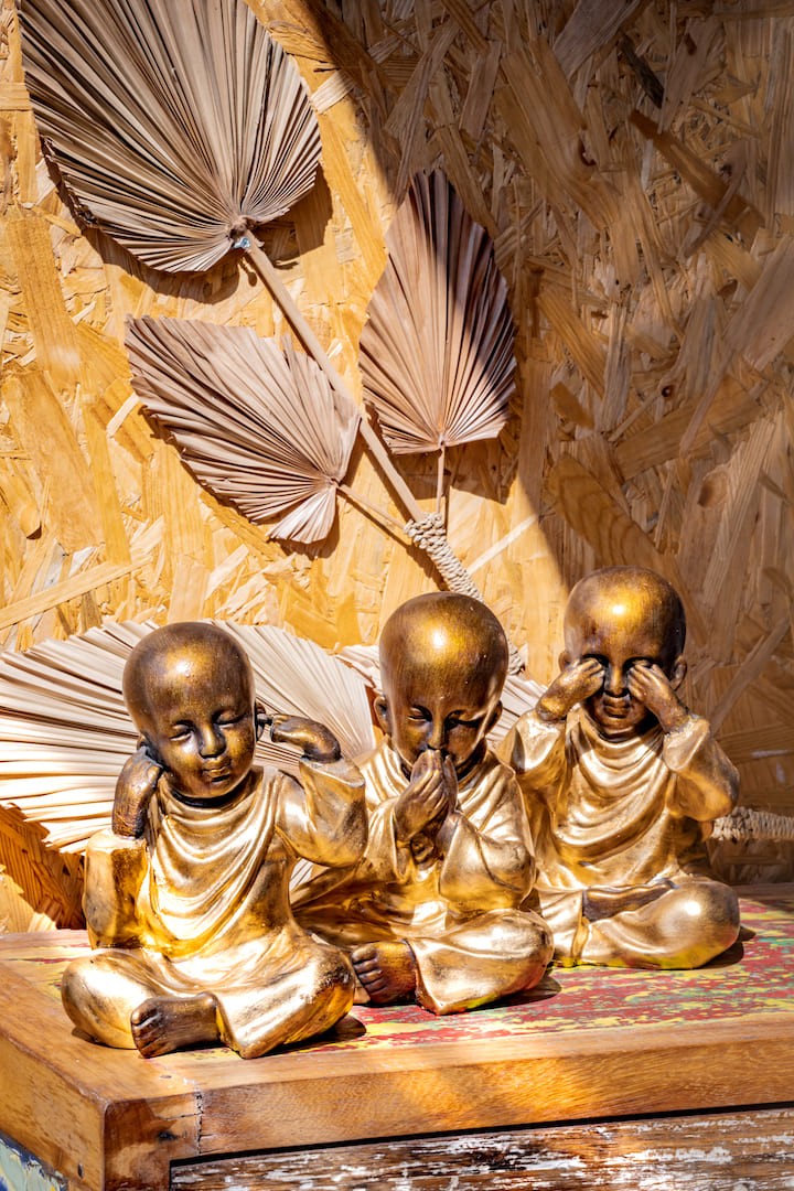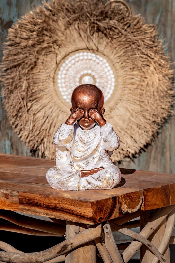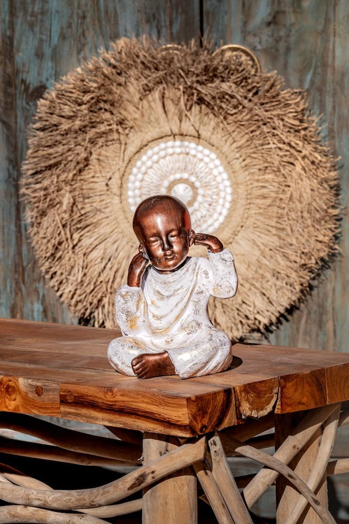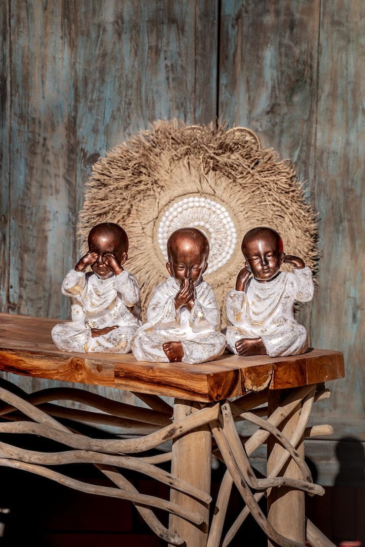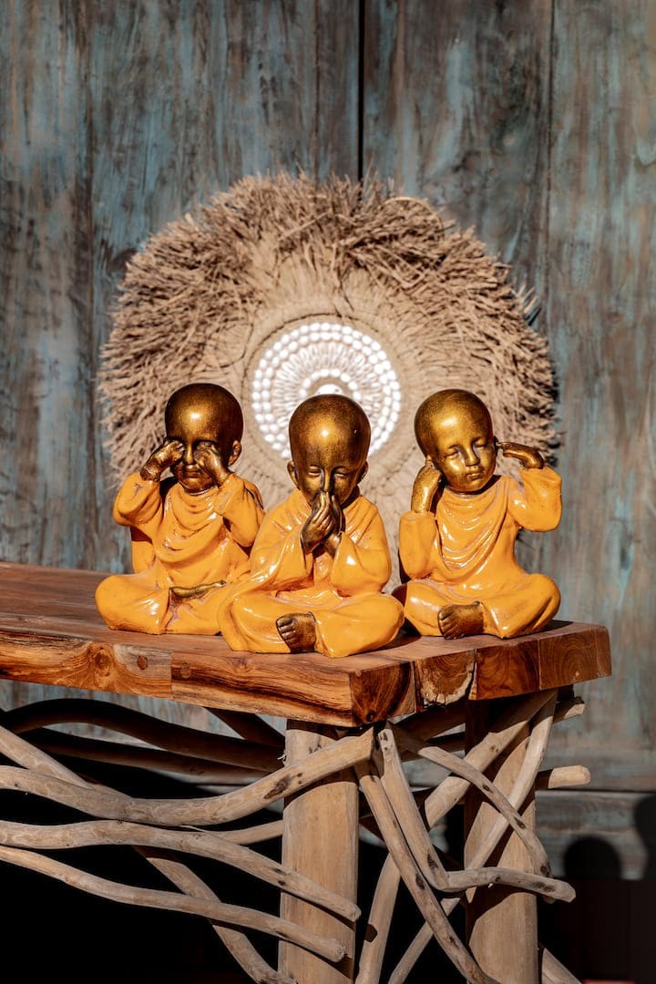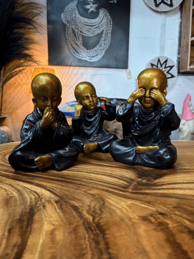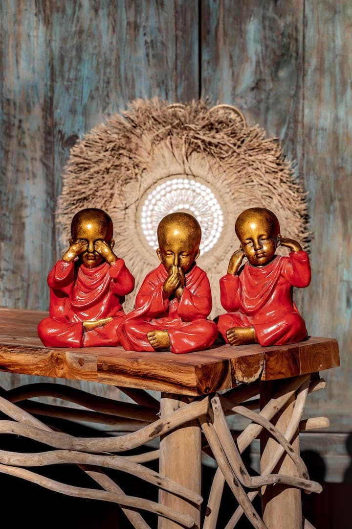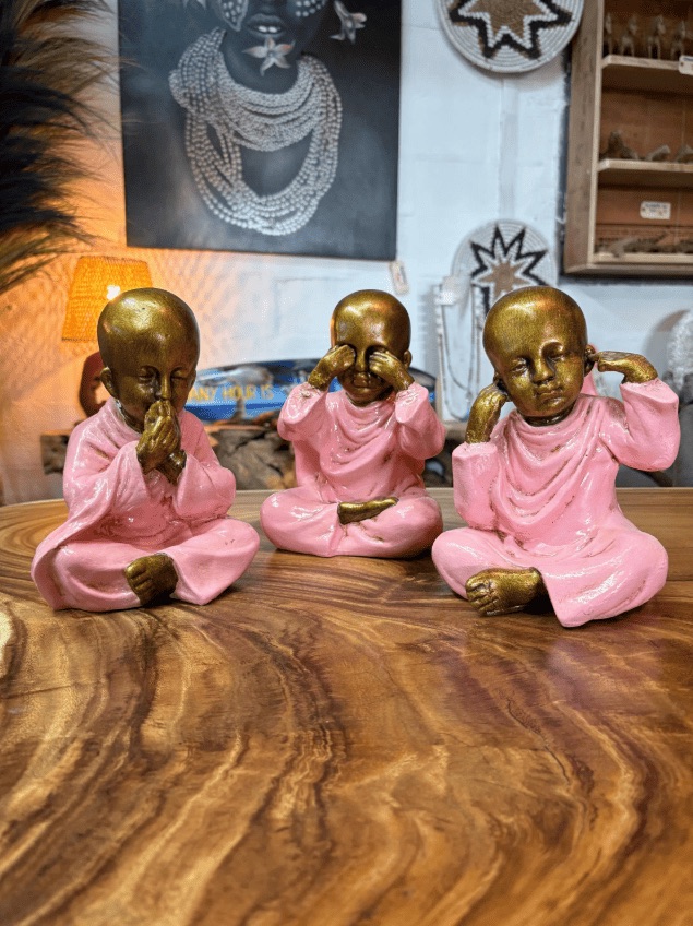 Craquez pour ce set de Shaolin de la sagesse, ils embelliront votre aménagement d’intérieur. Inspiré des singes de la sagesse, il y a le Shaolin qui « n’entend rien de mal », celui qui « ne voit rien de mal » et celui qui « ne dit rien de mal ». Selon une croyance chinoise, il n’arriverait que du bien aux personnes qui respecteraient cette maxime !