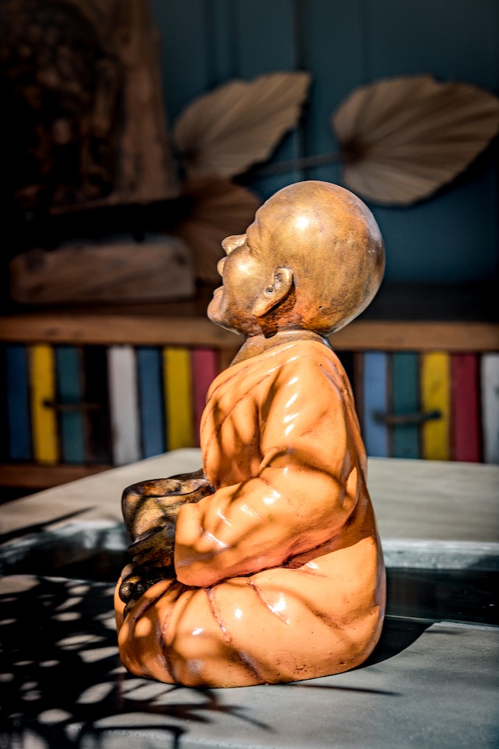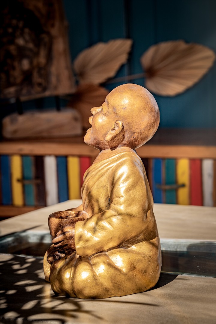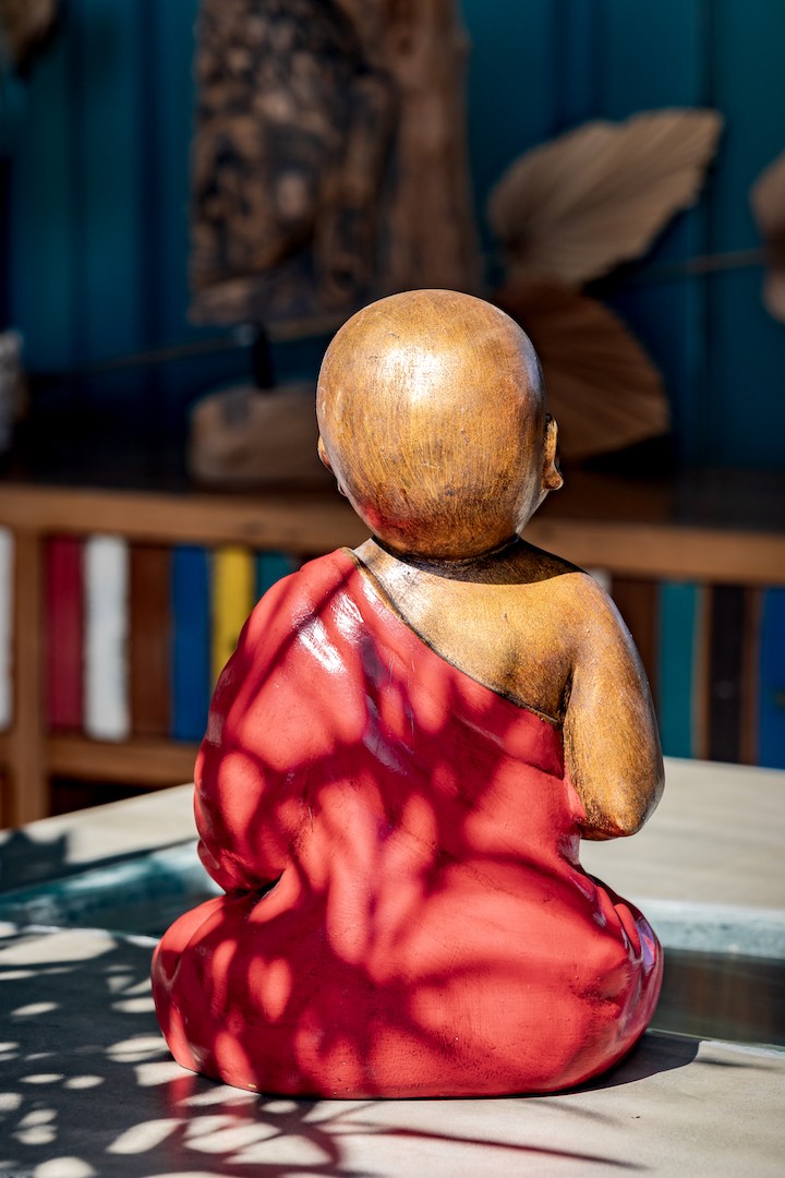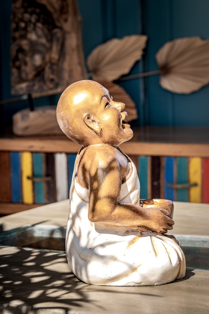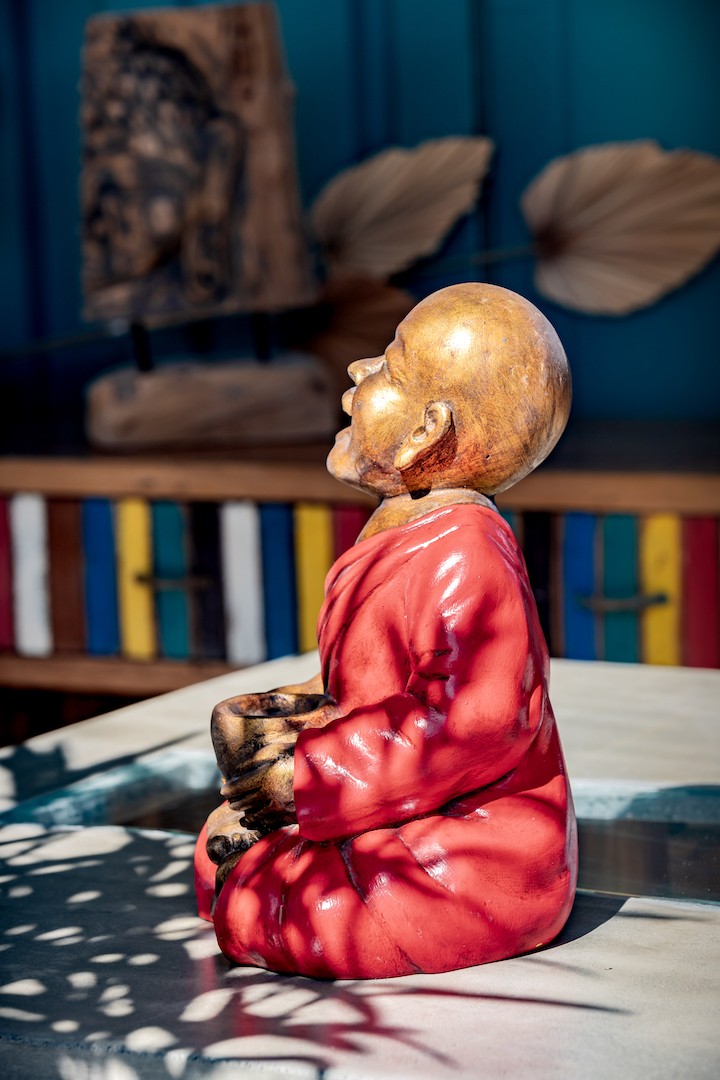 La statuette de Shaolin assis avec un bol est une pièce d’art unique qui a été fabriquée à Bali par des artisans qualifiés. La statue est fabriquée en résine et est disponible en plusieurs couleurs, notamment rouge, doré, jaune et blanc, pour s’adapter à tous les styles de décoration intérieure.