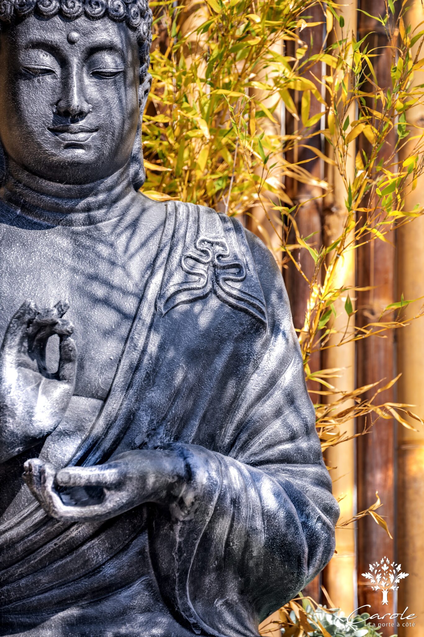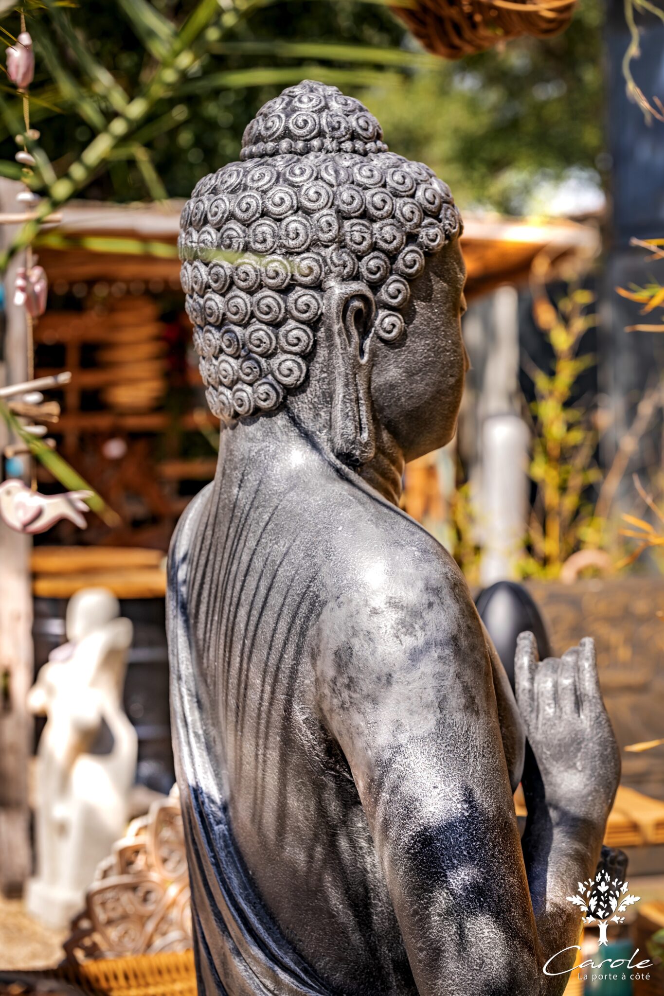 Laissez-vous tenter et guider par cette grande statue bouddha Chakra sur son socle argenté qui apportera une ambiance zen à votre extérieur. En feng shui, le bouddha incarne la sagesse, et la richesse. Pour attirer la bonne fortune dans une maison, le feng shui recommande de placer cette statue de Bouddha plutôt dans le salon, face à la porte d’entrée.