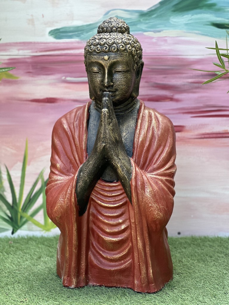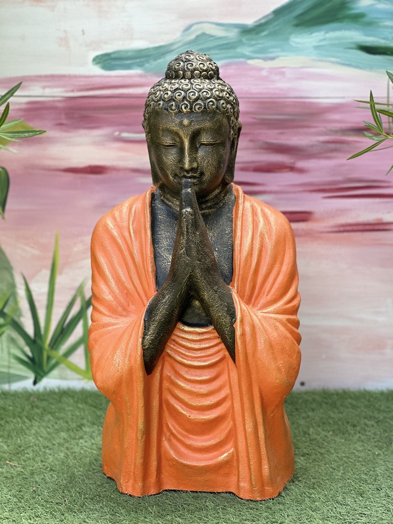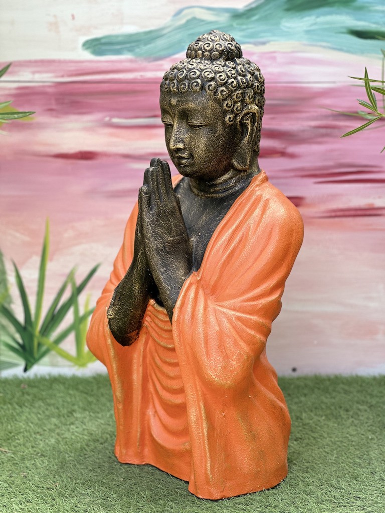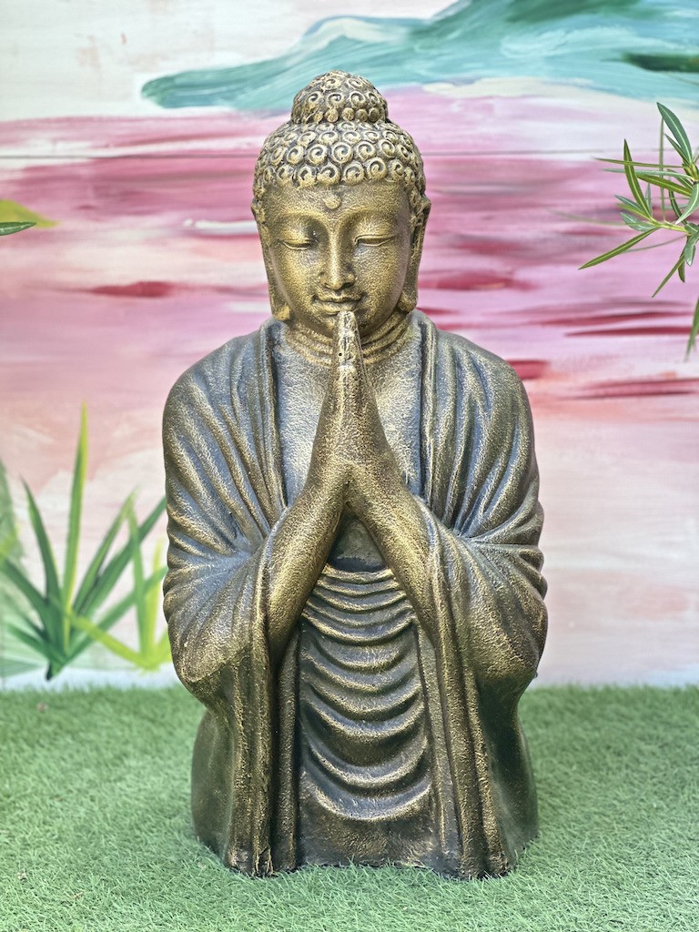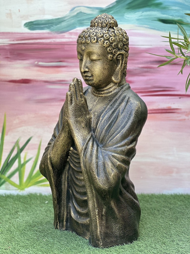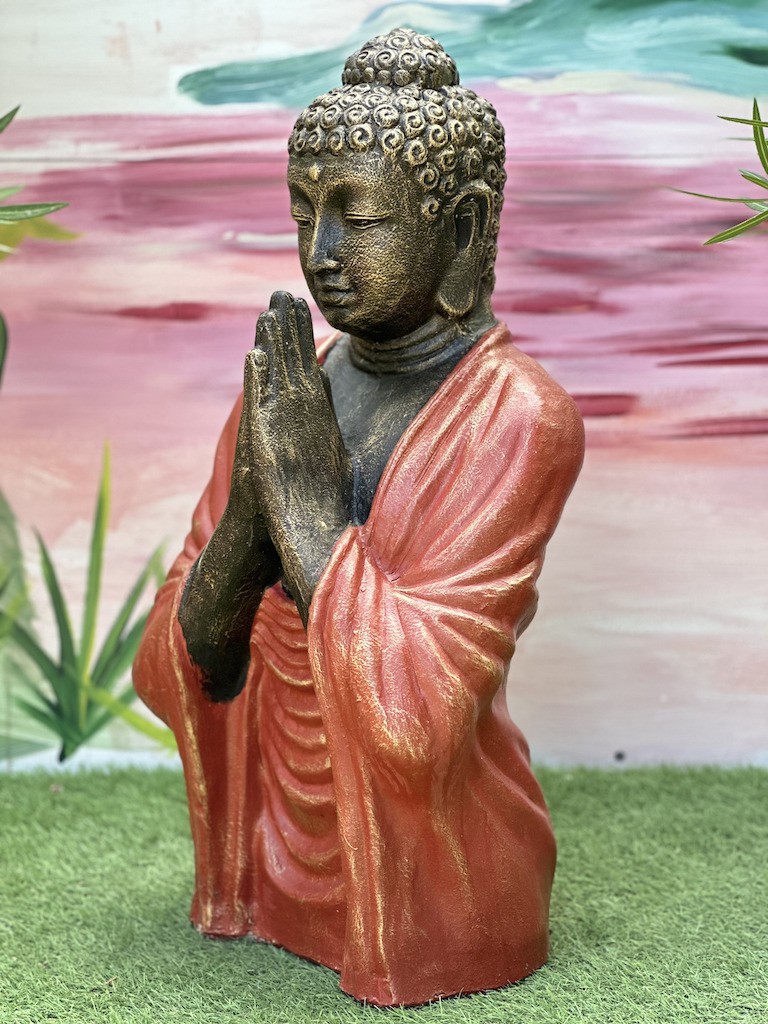 La statue de jardin Half Praying Bouddha est une œuvre en résine fibro-ciment, fusion de fibre de verre et de ciment, résistante aux intempéries. Fabriquée par des artisans talentueux de l’île de Java, elle incarne les valeurs bouddhistes telles que la compassion et la bienveillance. En position de prière, cette statue crée une atmosphère zen, idéale pour une décoration extérieure apaisante.