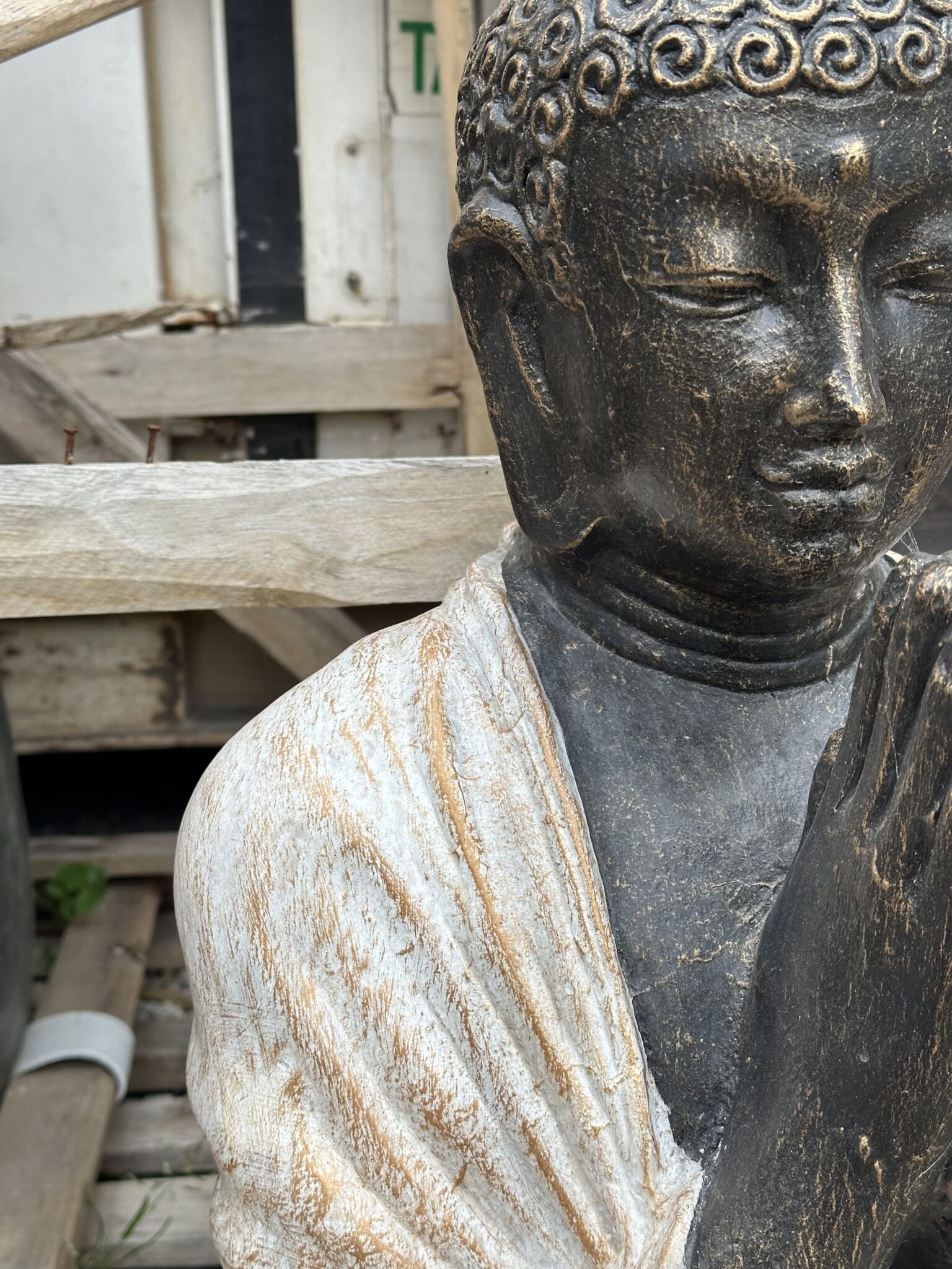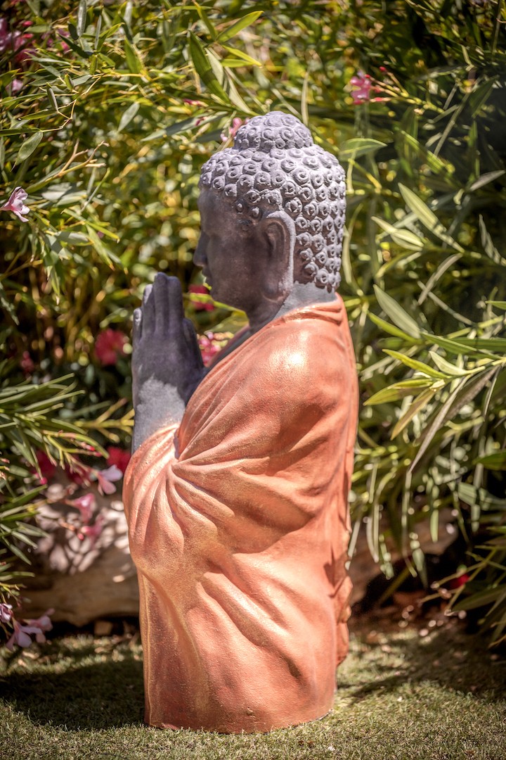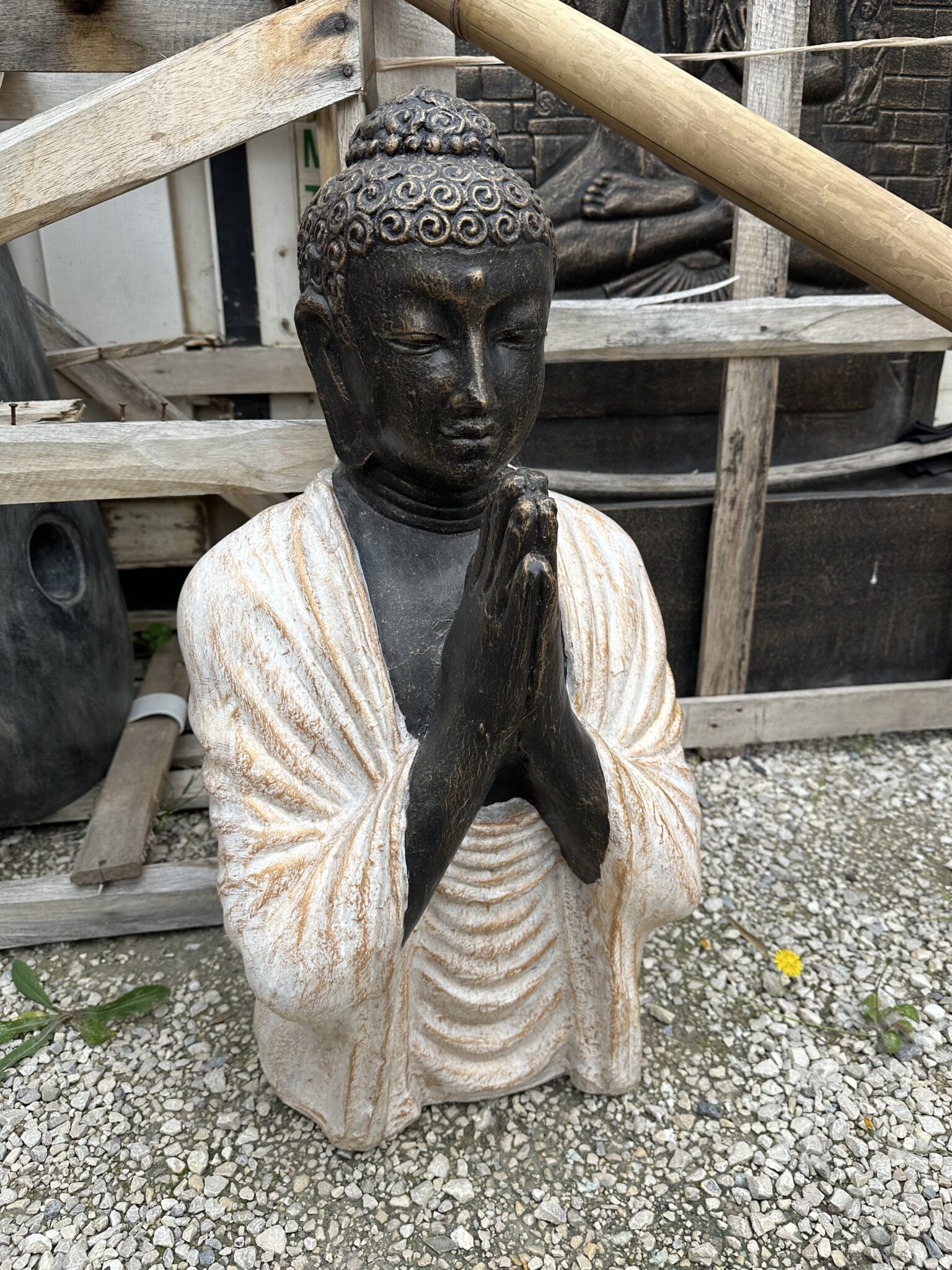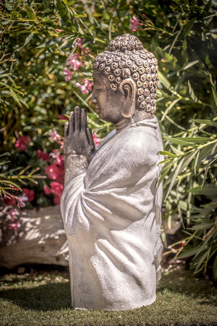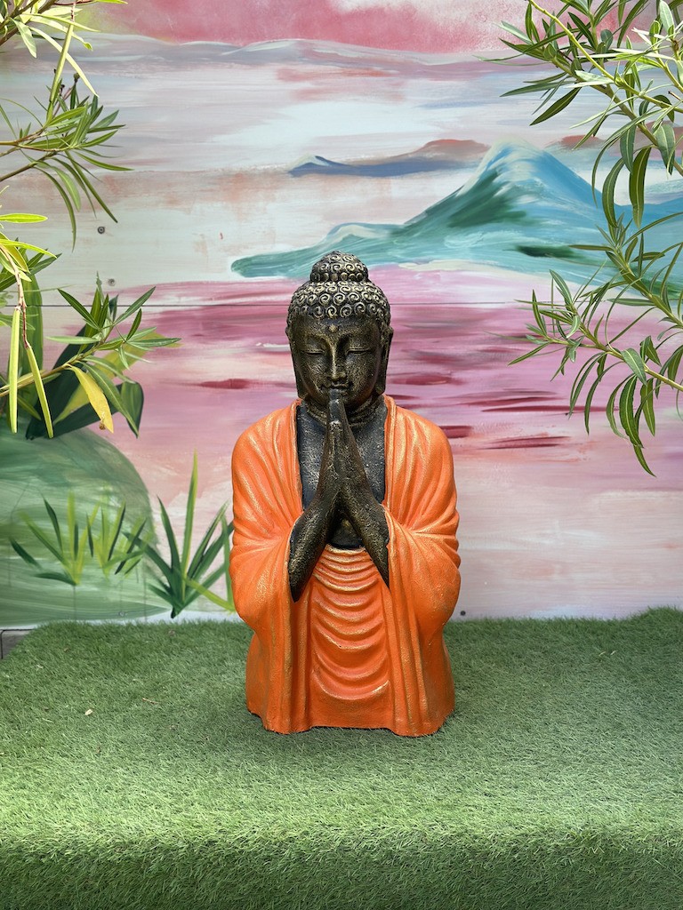 La statue de jardin Half Praying Bouddha est une œuvre en résine fibro-ciment, fusion de fibre de verre et de ciment, résistante aux intempéries. Fabriquée par des artisans talentueux de l’île de Java, elle incarne les valeurs bouddhistes telles que la compassion et la bienveillance. En position de prière, cette statue crée une atmosphère zen, idéale pour une décoration extérieure apaisante.