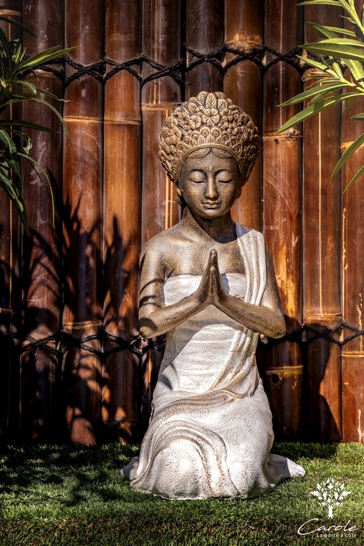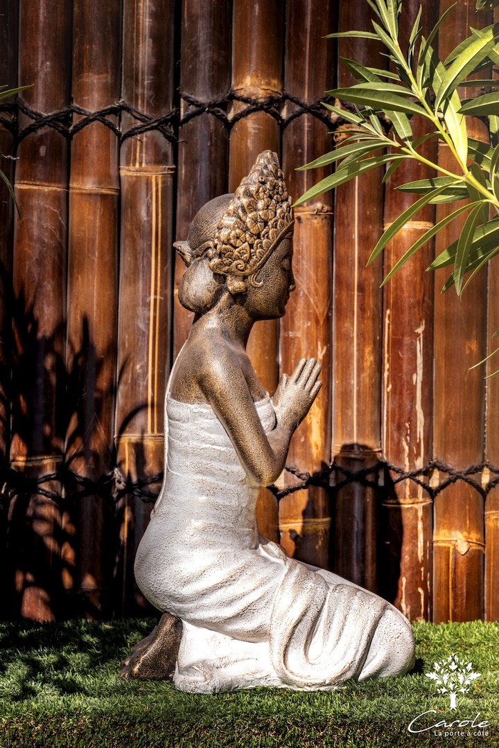 La statuette balinaise de femme agenouillée, symbole de la culture hindoue, allie une beauté intemporelle à un savoir-faire artisanal traditionnel. En choisissant cette œuvre d’art pour votre jardin, vous adoptez une pièce unique qui évoque une connexion spirituelle avec la nature. Agrémentez votre espace extérieur de cette statue d’extérieur, créant ainsi un sanctuaire où l’esthétique rencontre la méditation et la contemplation.