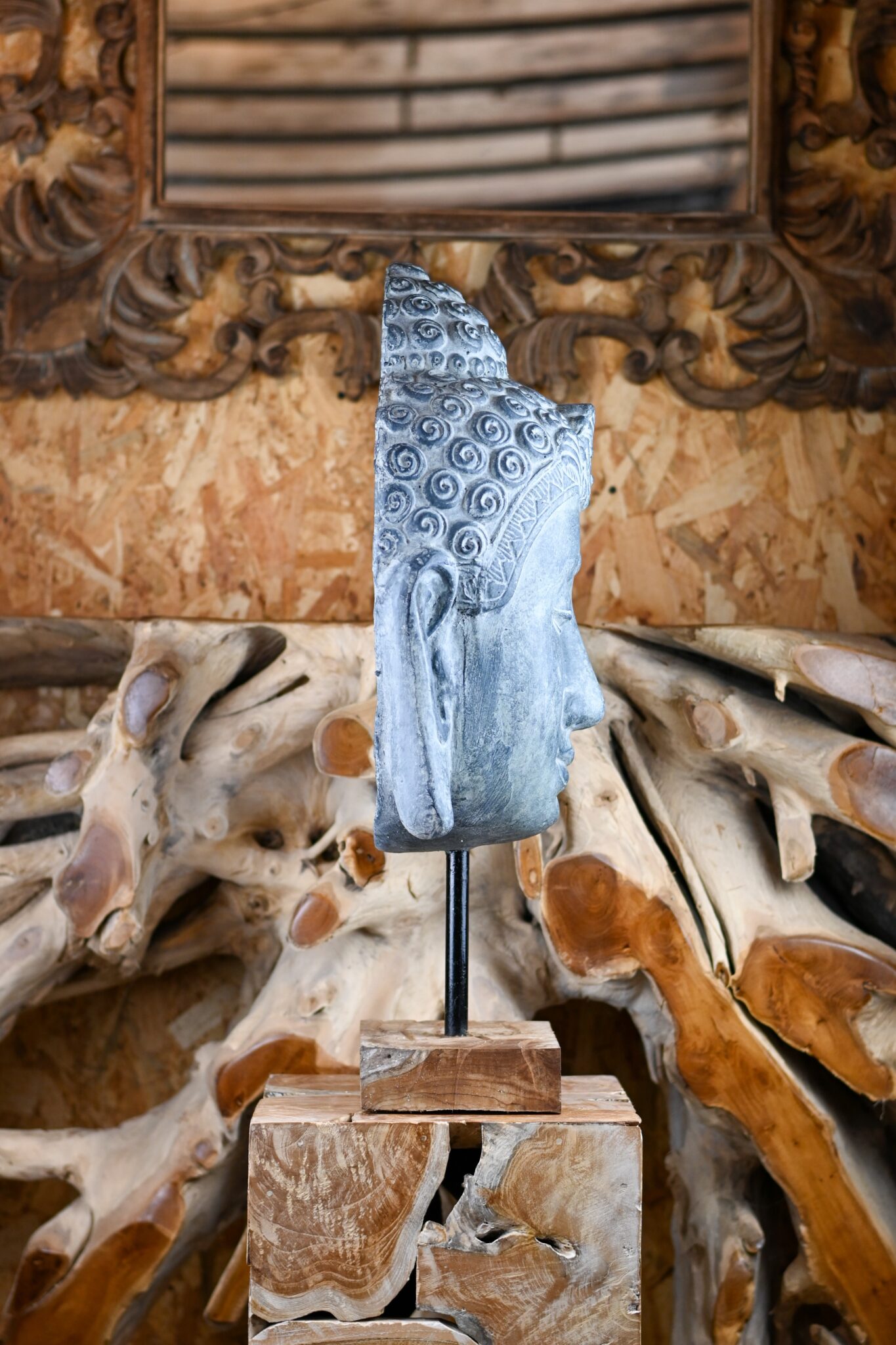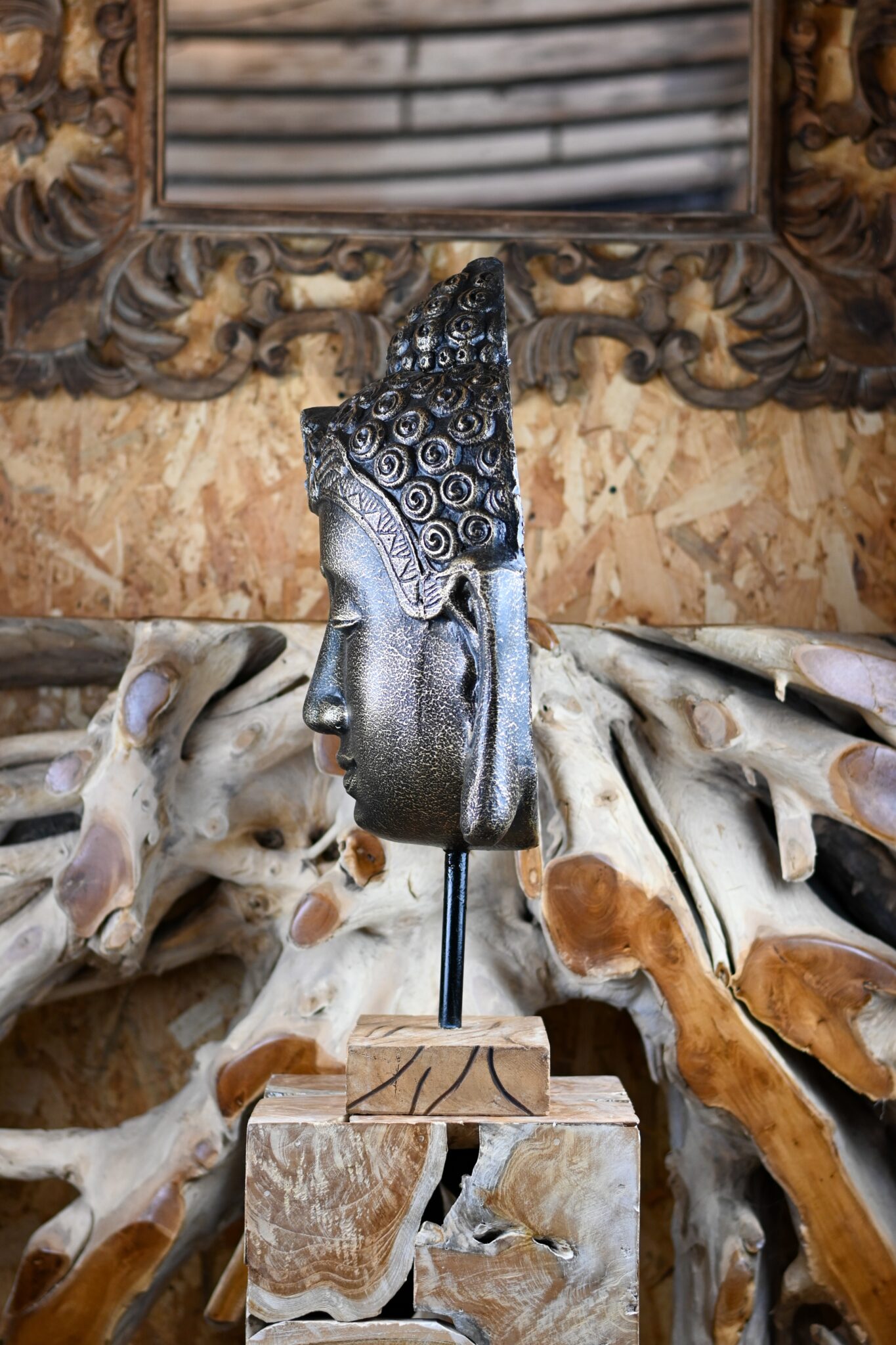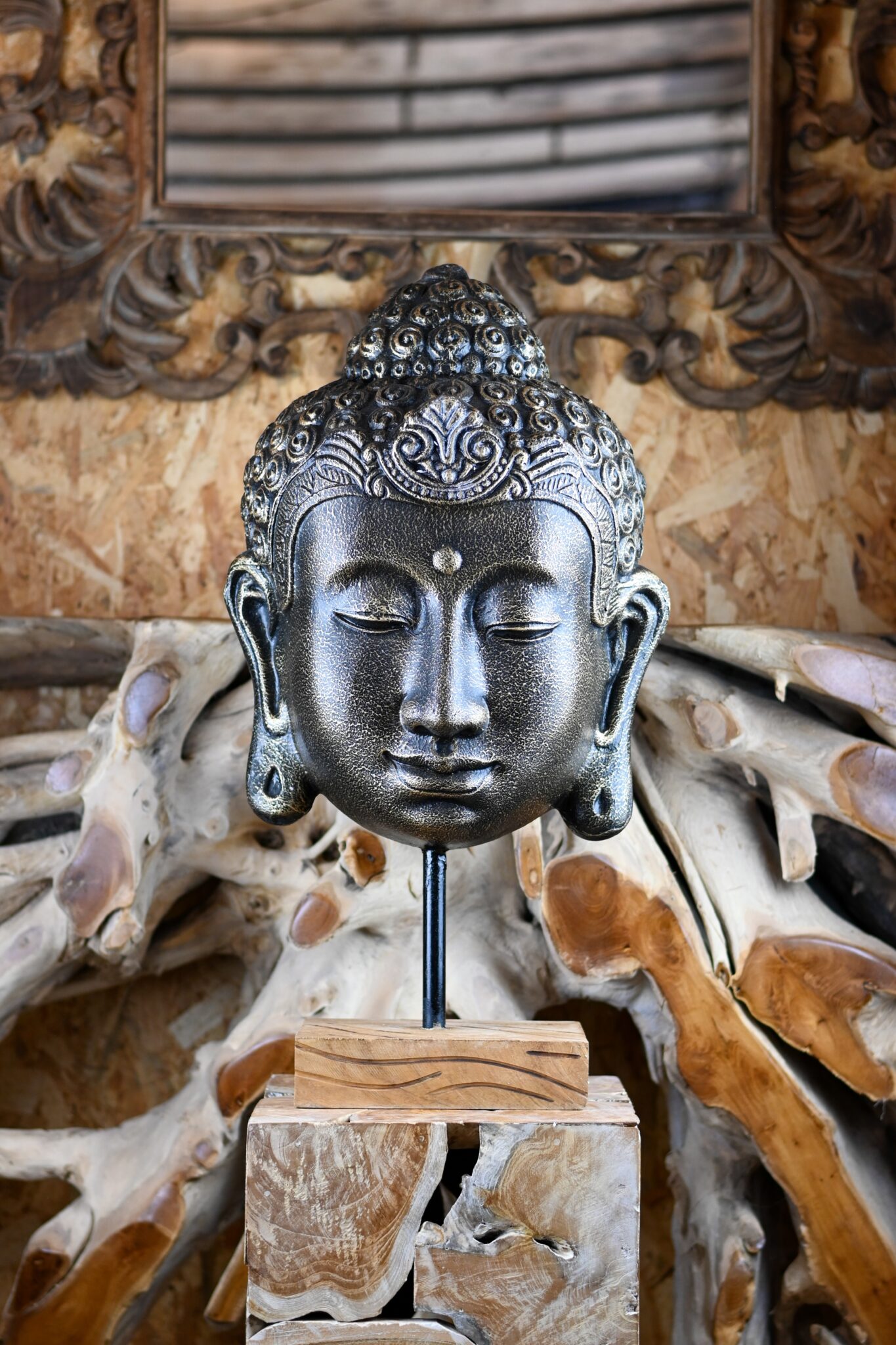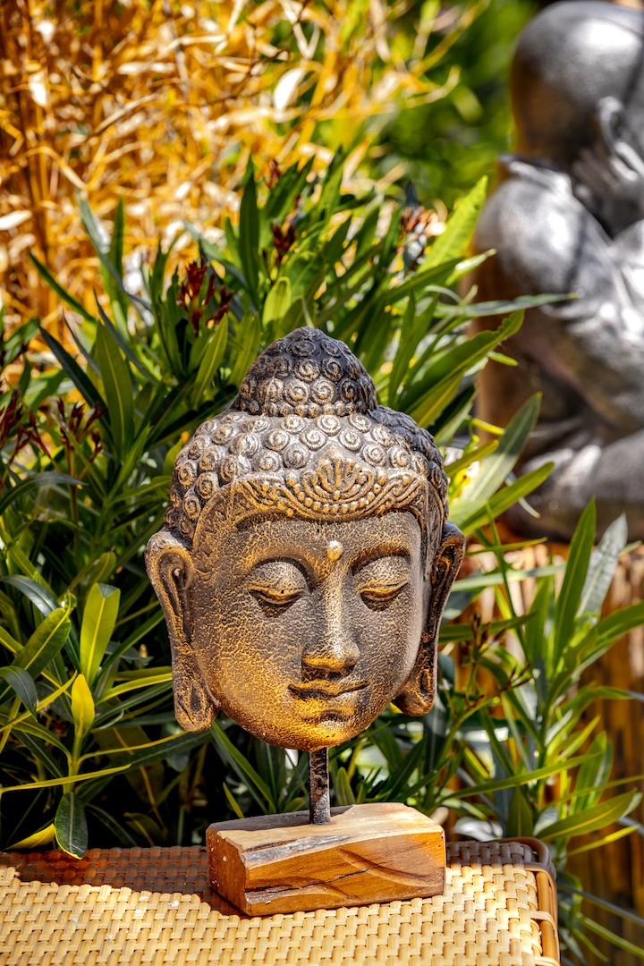 Superbe statue de Bouddha en résine sur son socle. Cette statue de Bouddha véhicule des valeurs du bouddhisme comme la compassion, l’altruisme et la bienveillance.