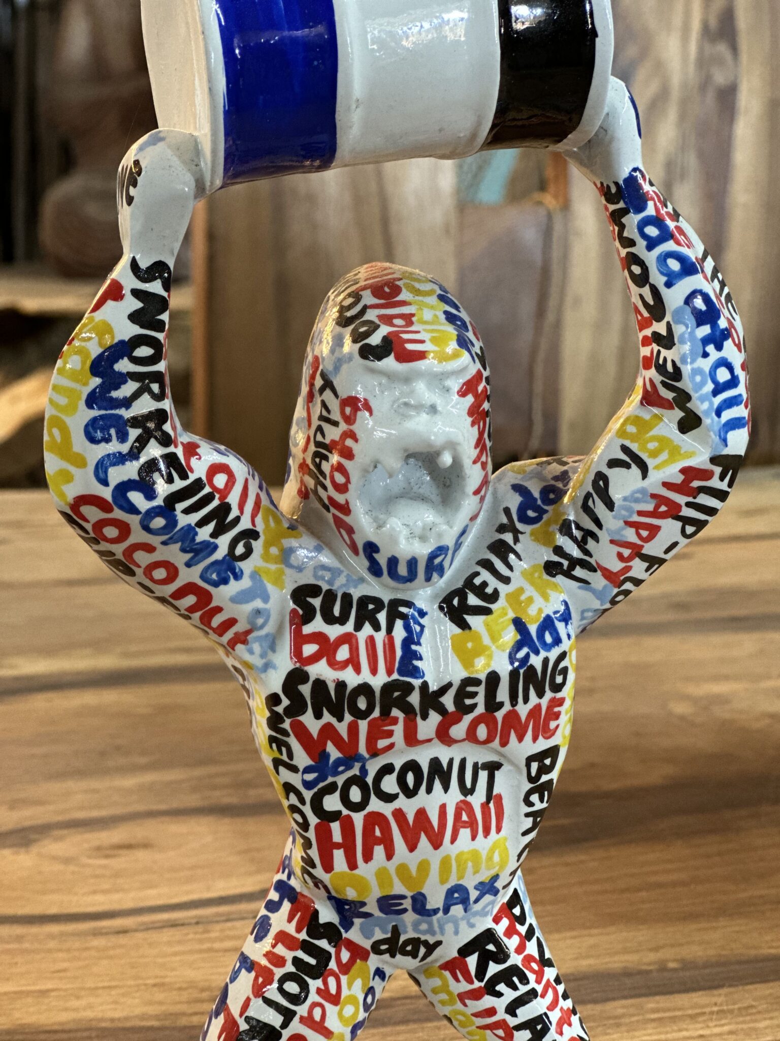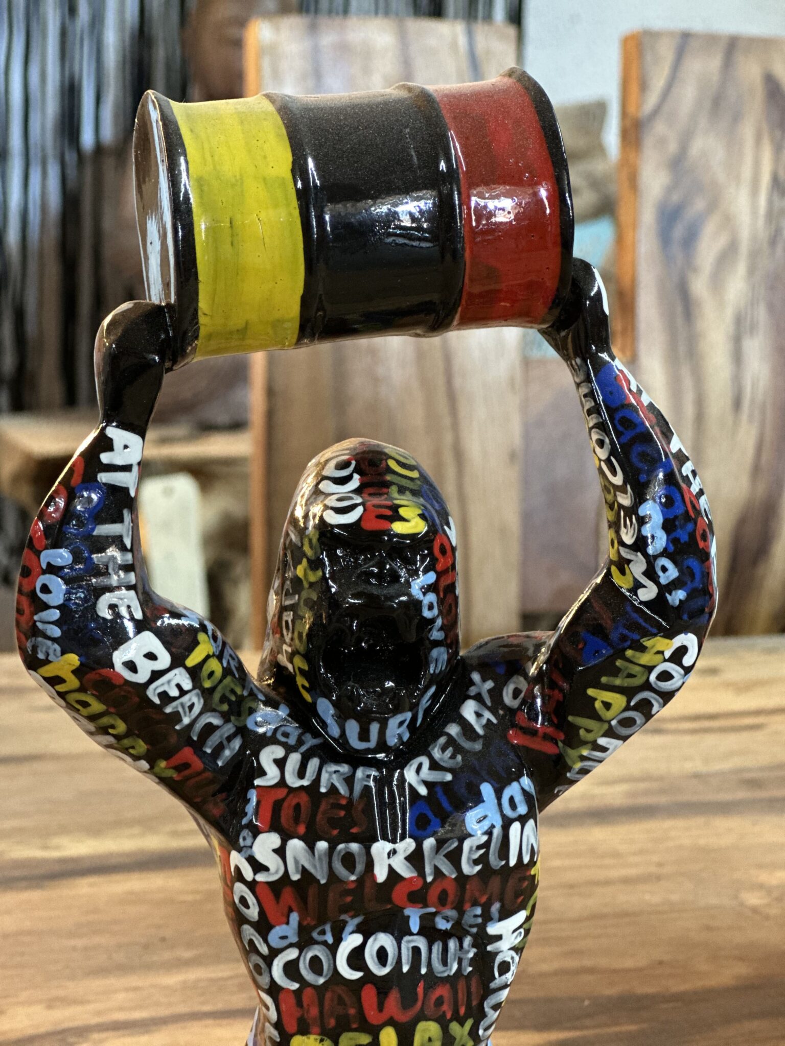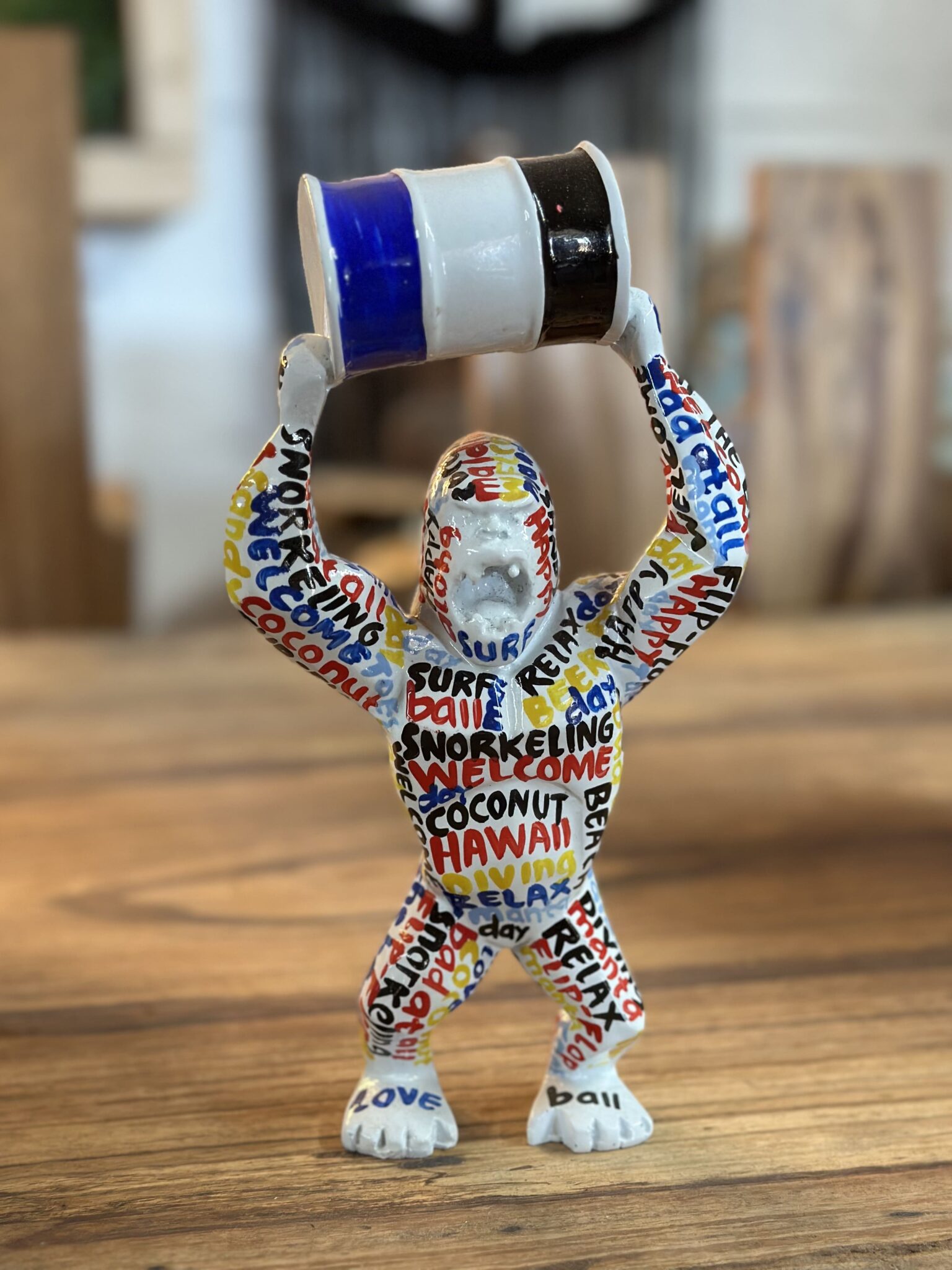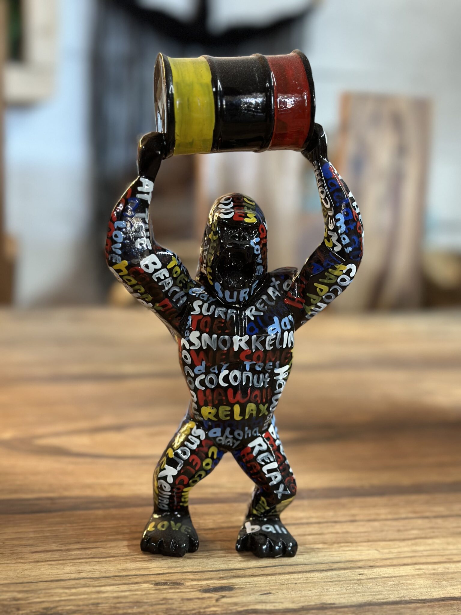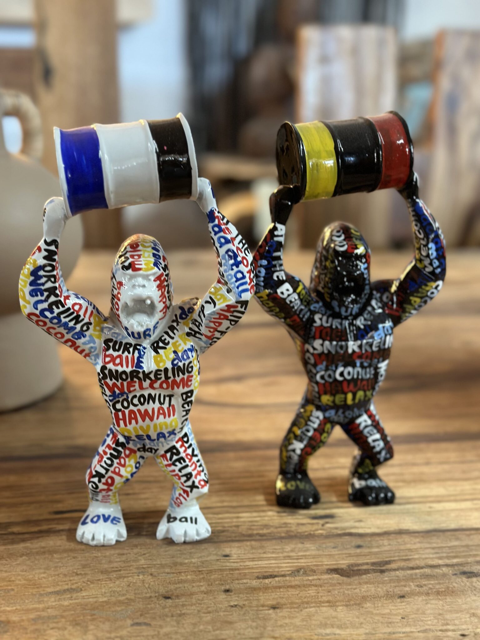 Apportez une touche audacieuse à votre décoration avec cette statuette de gorille en résine, directement importée de Bali. Avec son design dynamique et son expression intense, ce gorille debout, prêt à lancer un bidon, ajoute une énergie unique à votre intérieur. Un choix parfait pour ceux qui cherchent à intégrer une pièce originale et marquante à leur espace.