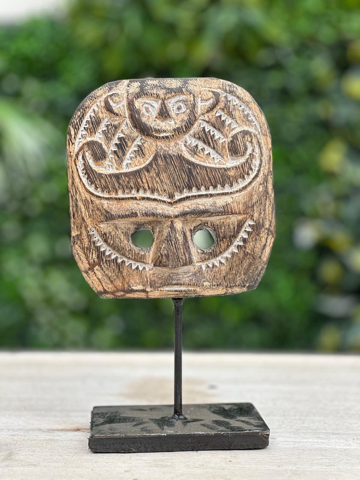 Découvrez notre statuette visage en bois sculpté, une décoration artisanale de Bali. Ce visage finement détaillé, incluant un singe sculpté, repose sur un pied stable, ajoutant une touche exotique et authentique à votre intérieur. Apportez l’art et la culture balinaise chez vous avec cette pièce unique.