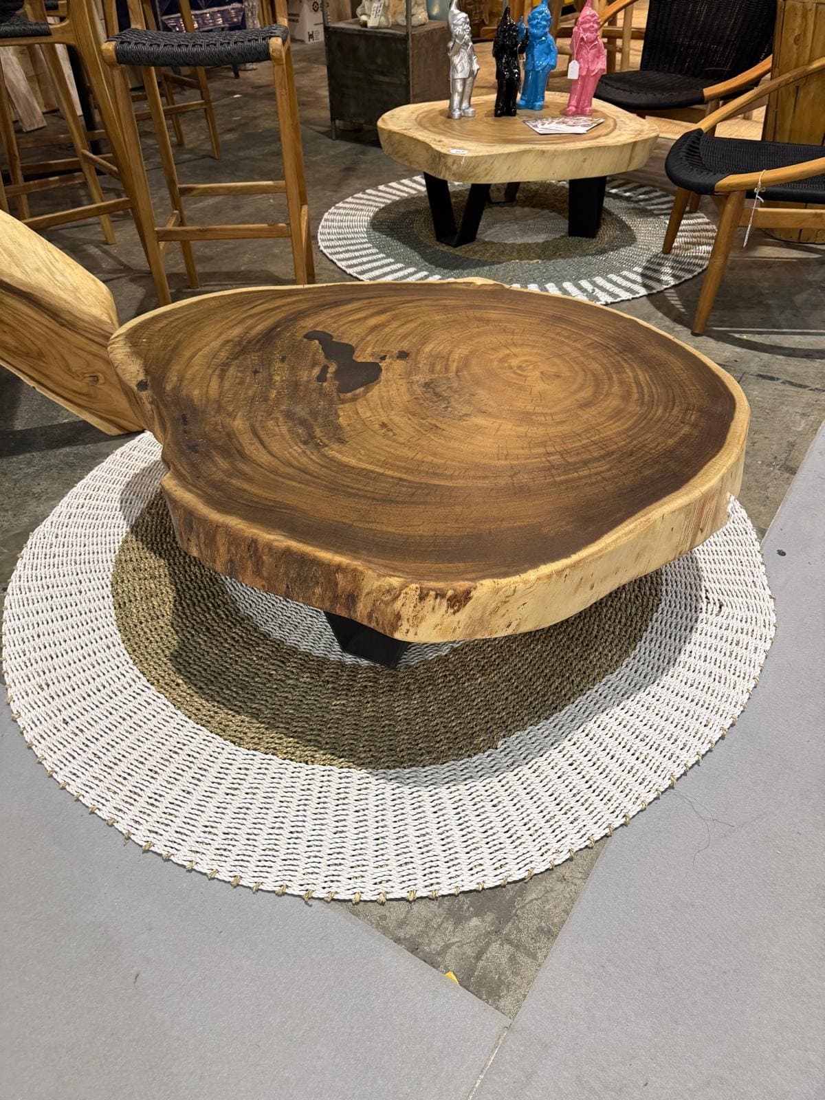 Cette table basse en suar foncé 120 x 95 x 40 cm, sculptée à la main par des artisans de Bali, est une pièce unique qui allie authenticité et élégance. Son bois massif aux nuances profondes en fait un élément central de la décoration, aussi bien dans un salon moderne ou bohème qu’en extérieur sur une terrasse ou dans un jardin. Robuste et raffinée, elle s’intègre dans tous les styles et apporte une touche balinaise chaleureuse à chaque espace.