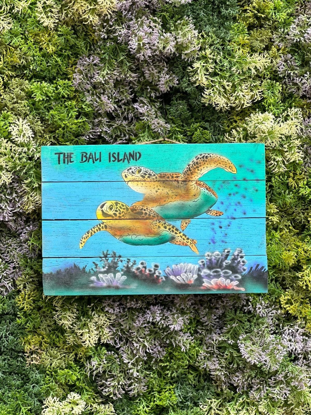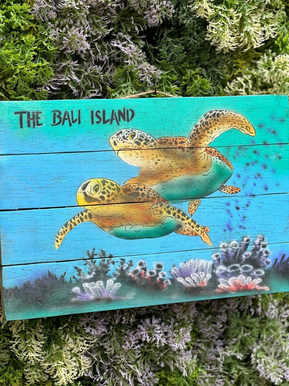 Sublimez votre foyer avec notre tableau en bois, une décoration murale inspirée de Bali, mettant en scène des tortues et des coraux. Fabriqué à la main par des artisans balinais, cette œuvre unique apporte une touche d’authenticité et de charme à votre intérieur.