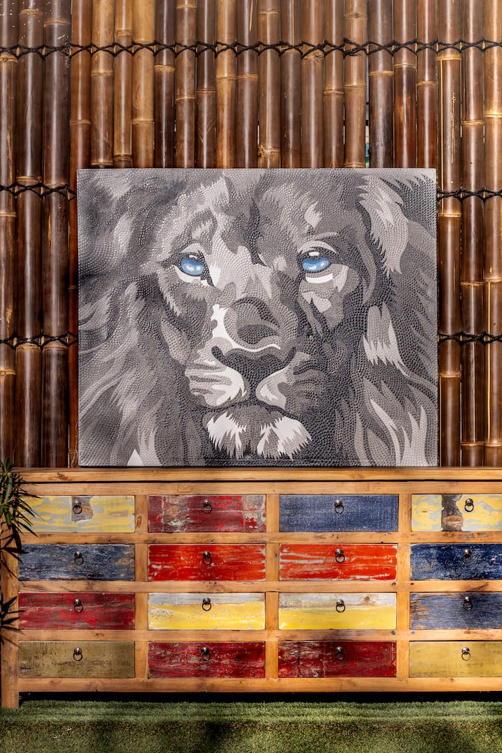 Explorez l’art balinais avec notre tableau tête de lion en noir et blanc, réalisé à la main par des artisans de Bali. Symbole de courage et de royauté, ses détails authentiques, accompagnés de ses yeux bleus, ajoutent une touche majestueuse à votre décoration intérieure ou extérieure. Ce sublime tableau transformera votre espace en un havre artistique, évoquant l’élégance et la force du lion. Laissez-vous séduire par cette pièce unique, un joyau d’inspiration décoration pour embellir votre foyer.