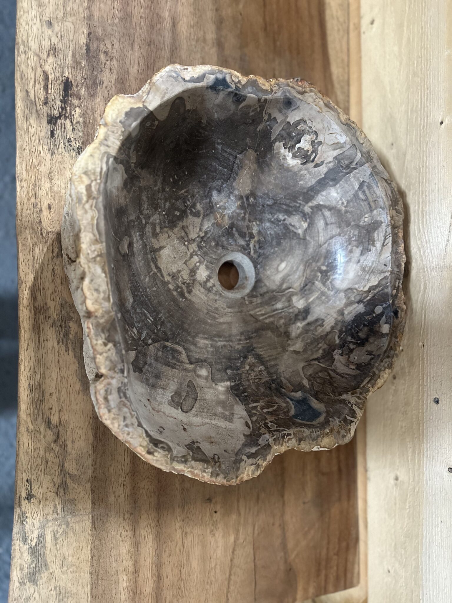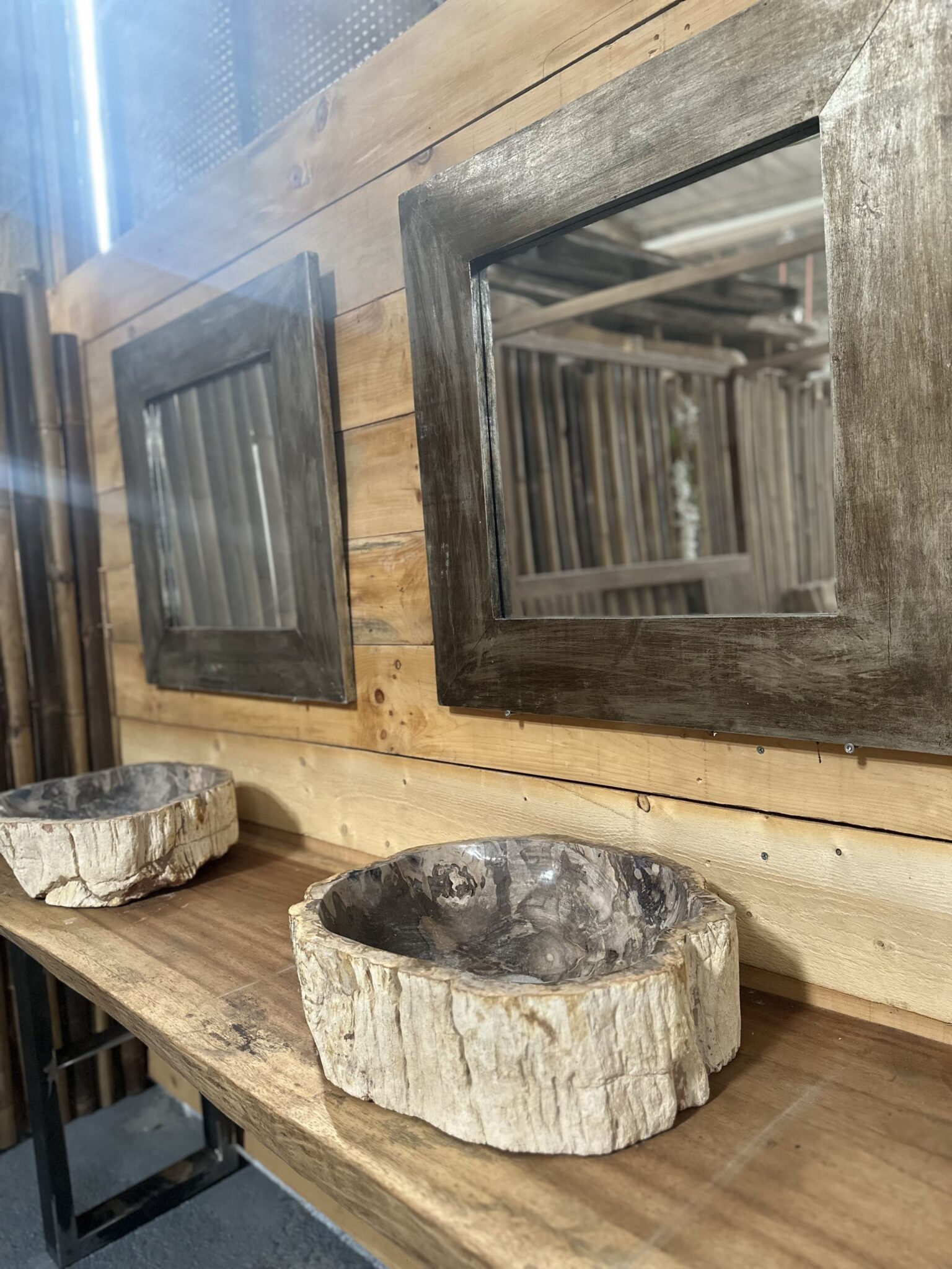 Cette vasque en bois fossilisé est une pièce artisanale unique, façonnée à la main par des artisans balinais. Sa forme globalement ronde présente de subtiles irrégularités qui soulignent son caractère naturel et authentique. Avec son diamètre d’environ 50 cm et sa hauteur de 15 cm, elle offre une belle contenance, idéale pour une salle de bain à la fois pratique et esthétique. Conçue dans un matériau rare et durable, elle apporte une touche de décoration minérale et chaleureuse tout en conservant l’âme du bois d’origine. Pour assurer la longévité de votre vasque, avant de la mettre en place, nous vous conseillons de lui appliquer un produit hydrofuge.