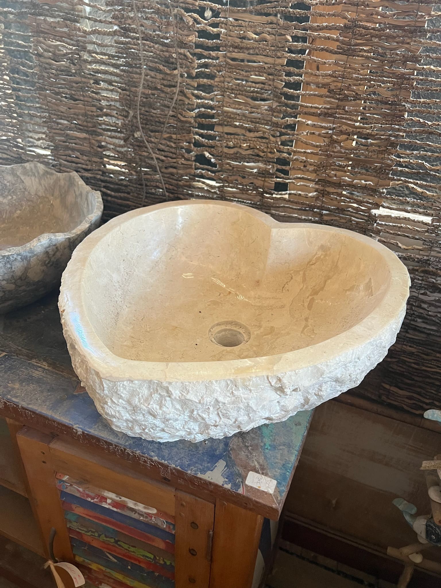 Ajoutez une touche de sophistication à votre décoration avec notre vasque en marbre en forme de cœur, faite à la main à Bali. Parfaite pour la salle de bain, la cuisine ou l’extérieur protégé, elle allie artisanat traditionnel et design moderne pour un intérieur ou extérieur élégant et unique.
